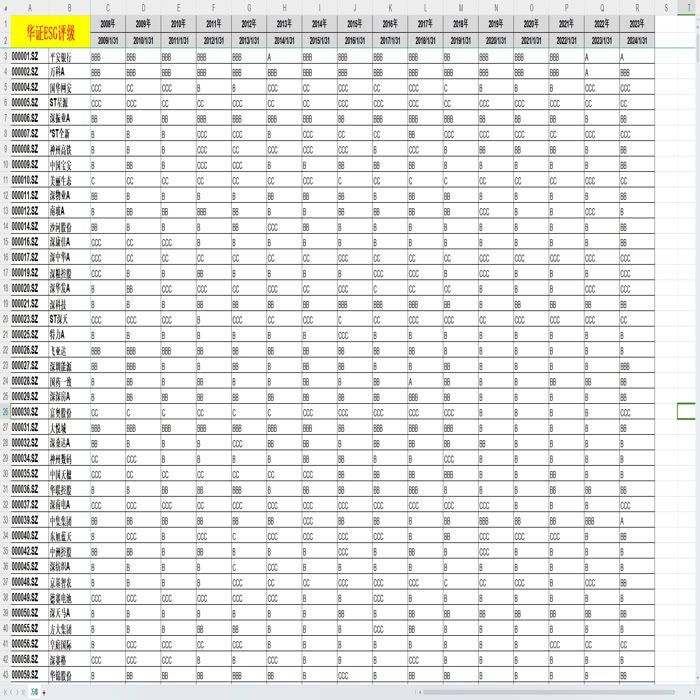 上市公司 华证ESG评级 2009年1月31日-2024年1