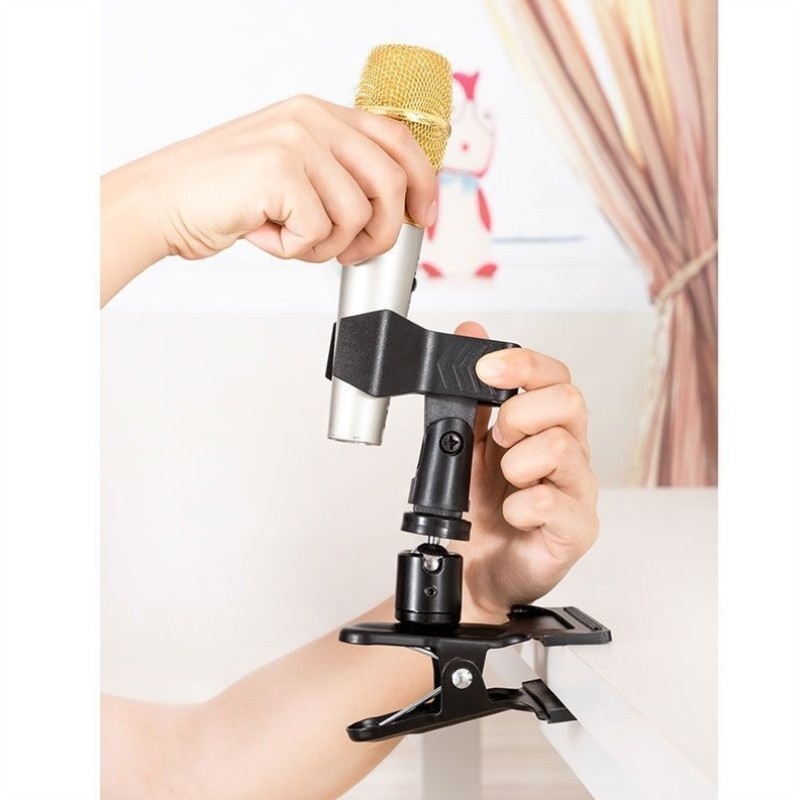 麦克风话筒支架金属大力夹k歌无线话筒夹直播架弹簧夹360度通用夹