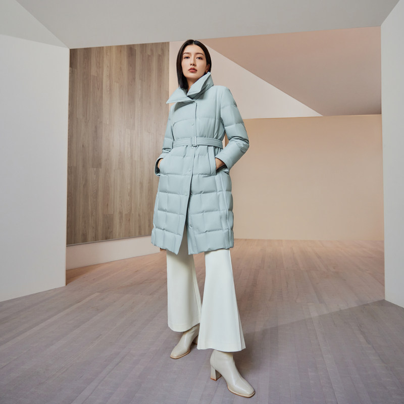 【鹅绒】波司登女中长款经典商务翻领简约优雅收腰显瘦厚羽绒服