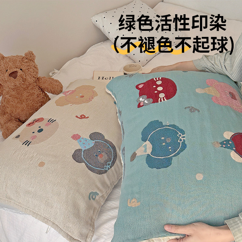 柔软卡通纯棉枕巾一对装全棉纱布透气防头油四季通用a类枕头垫巾