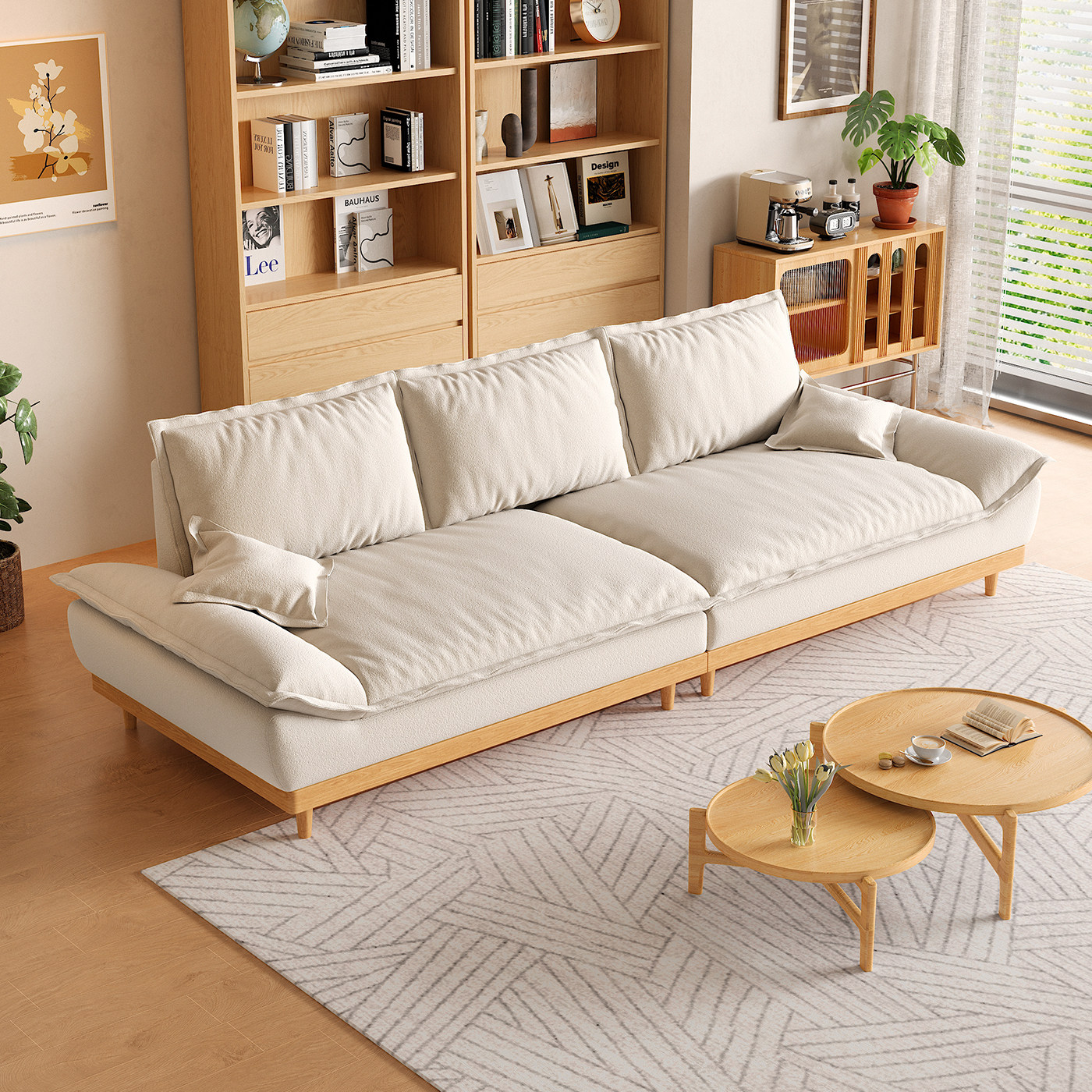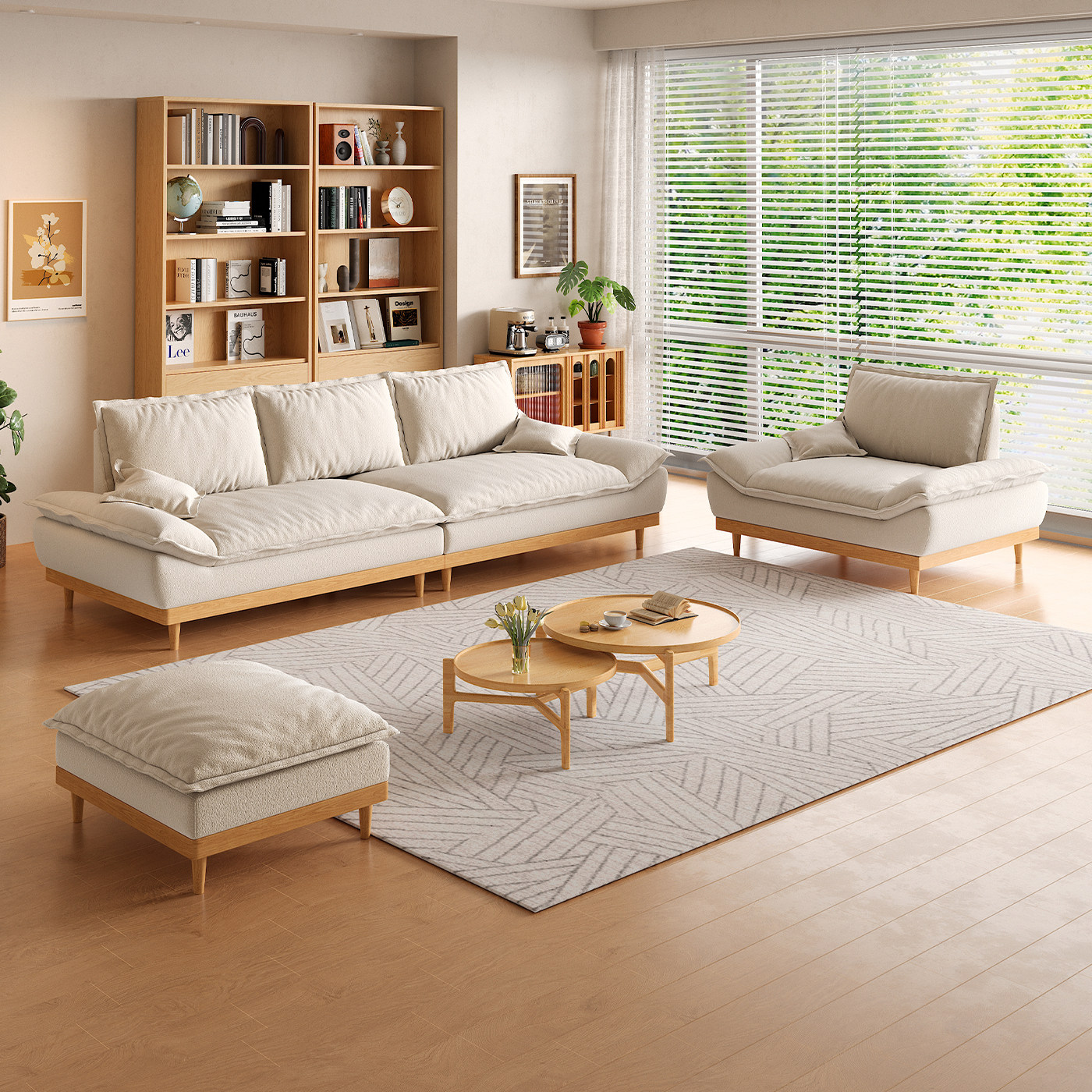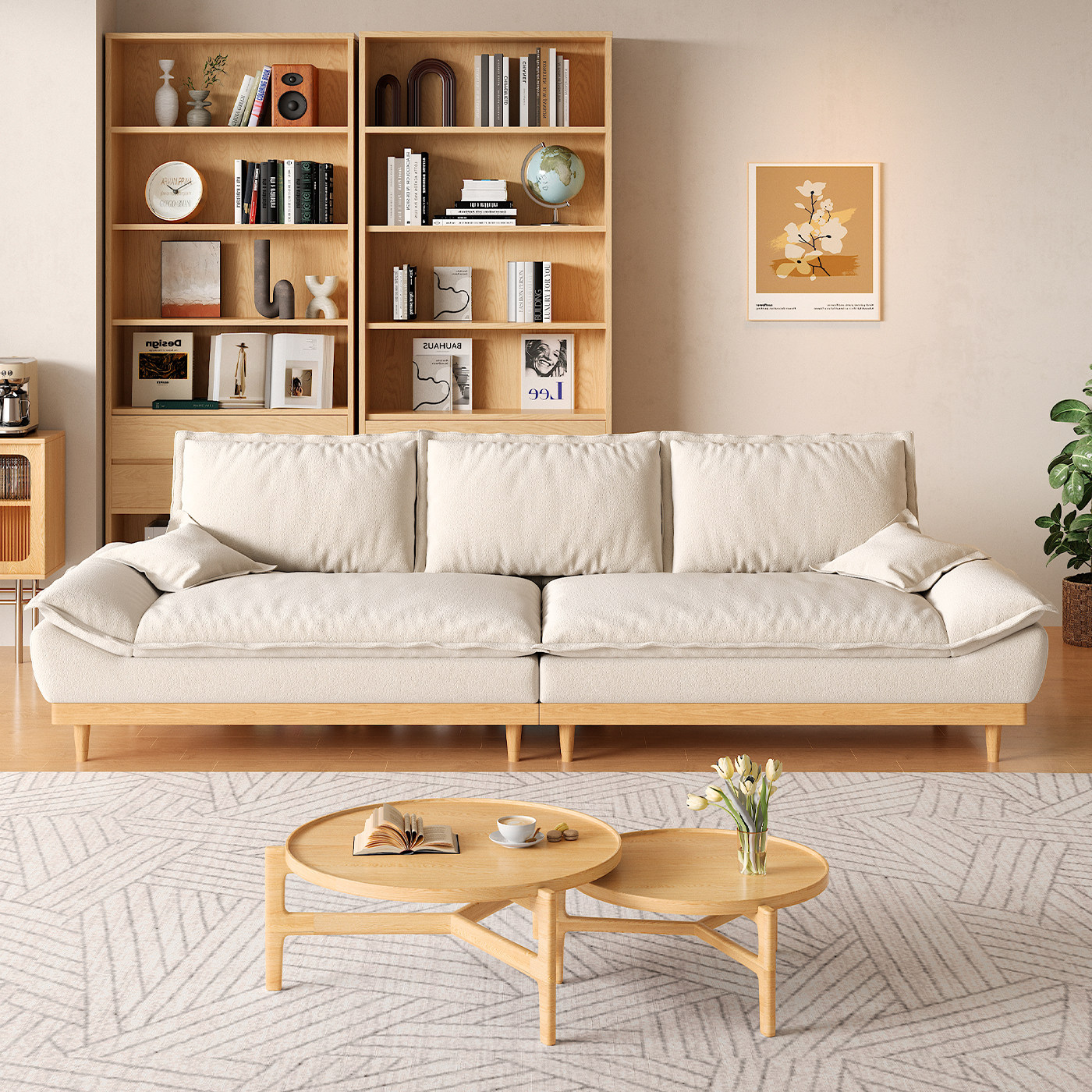 司朴奶油风可拆洗帆船布艺沙发小户型客厅原木风直排猫抓布沙发