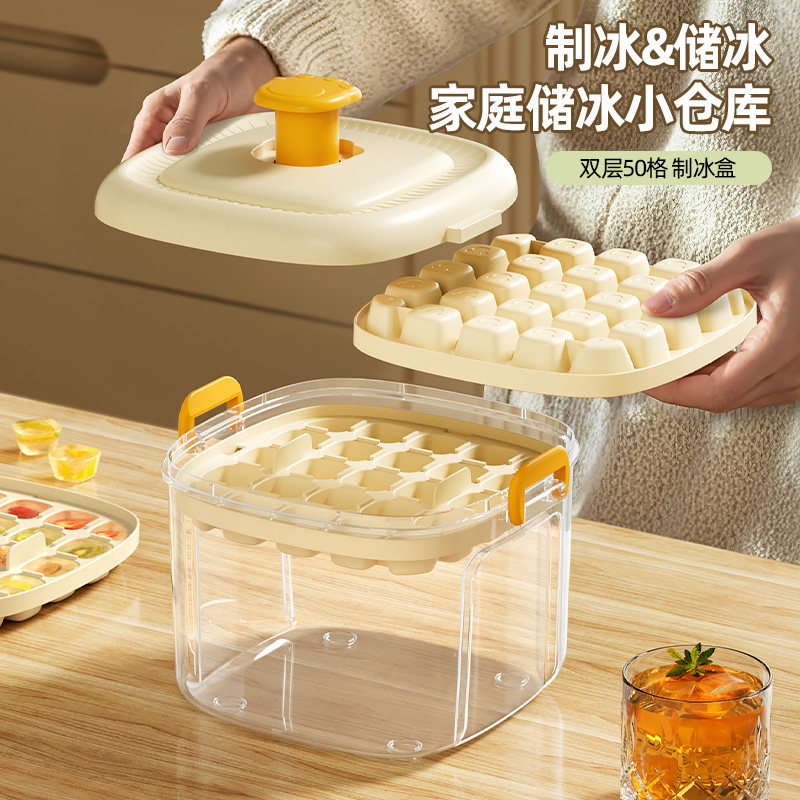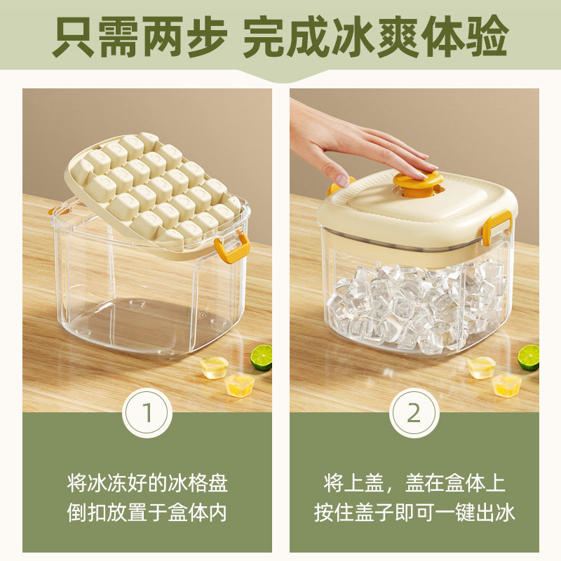 冰块模具大容量按压冰格家用食品级制冰储冰盒带盖冰箱冻冰块神器