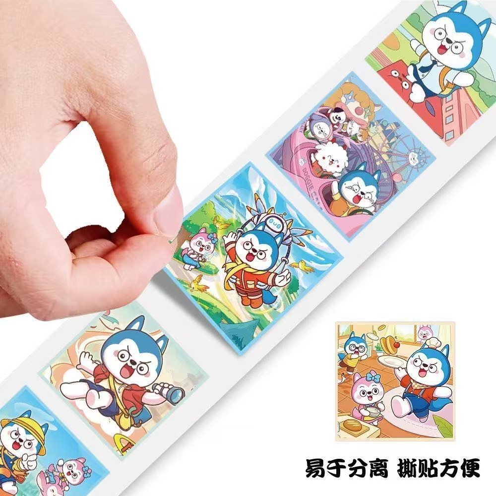 新款哈小浪一家卷卷贴热门卡通动画可爱狗狗儿童贴画装饰封口贴画