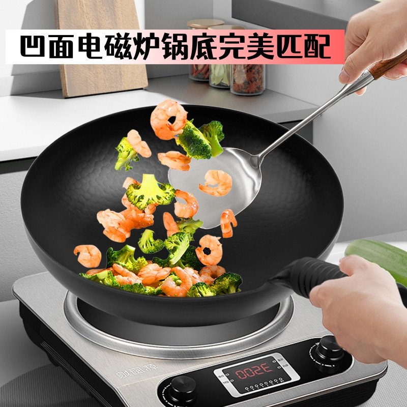 凹面电磁炉专用铁锅无涂层商用饭店炒锅厨师家用炒菜锅圆底熟铁