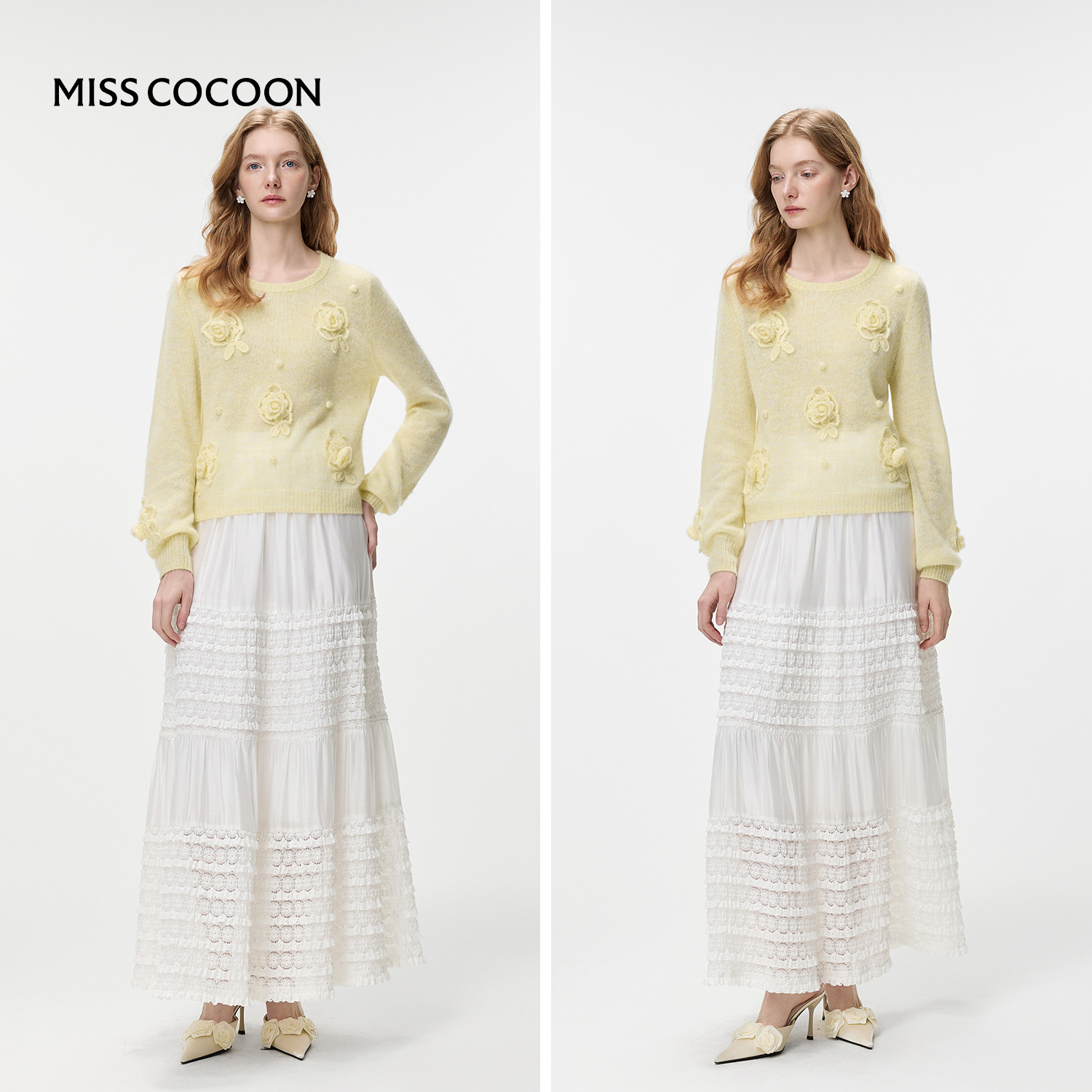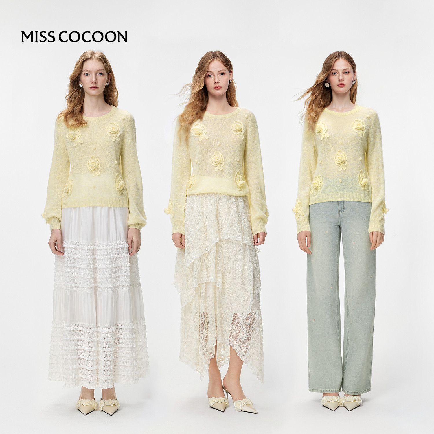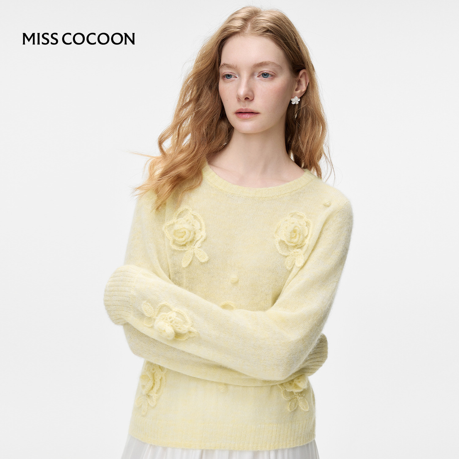 MISSCOCOON可可尼黄色圆领毛衣女2026春新款慵懒风羊驼毛针织衫