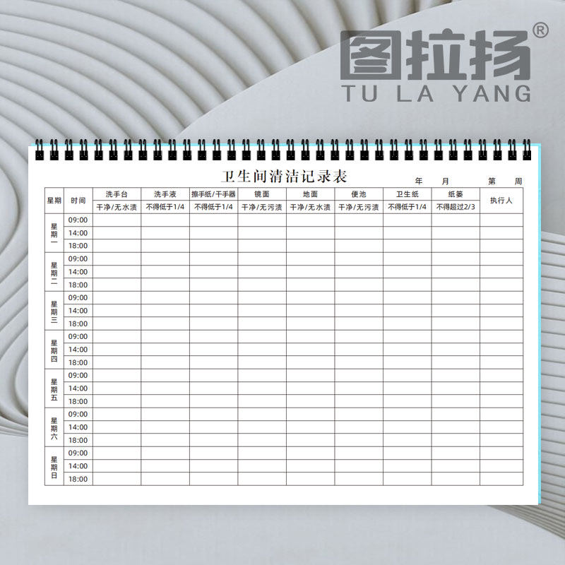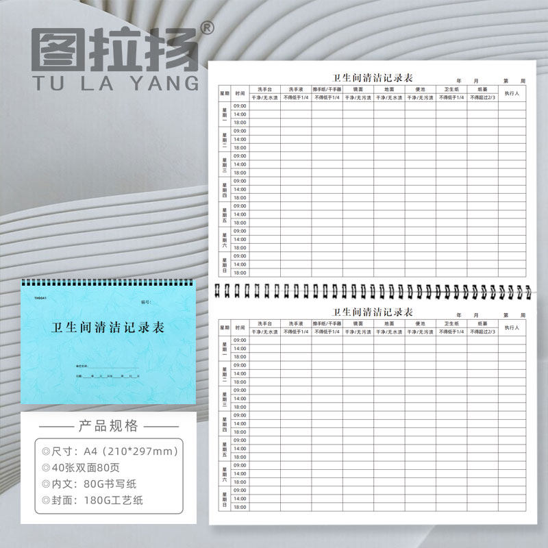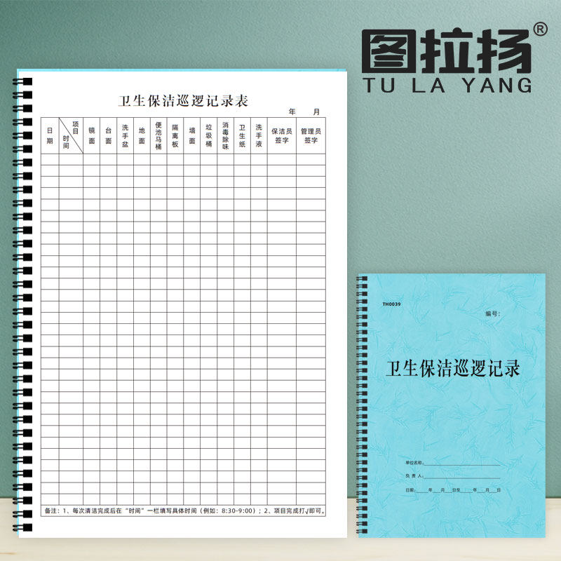 卫生间清洁记录表日常保洁记录表清洁卫生检查登记本保洁巡逻记录