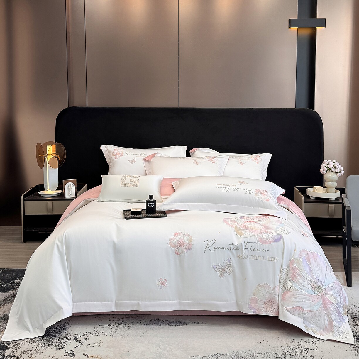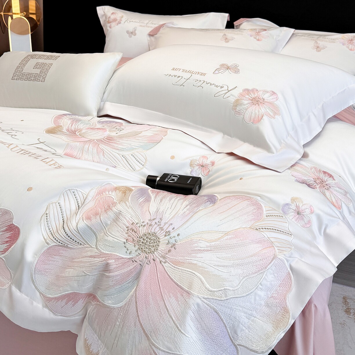 A类新疆长绒棉四件套纯棉刺绣宽边全棉被套床单柔软床上用品套件