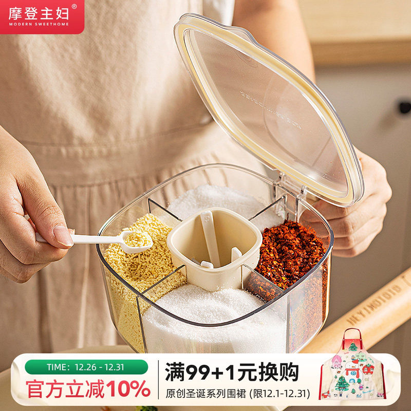 摩登主妇调料盒多格一体组合套装厨房盐罐收纳盒家用味精调味料罐