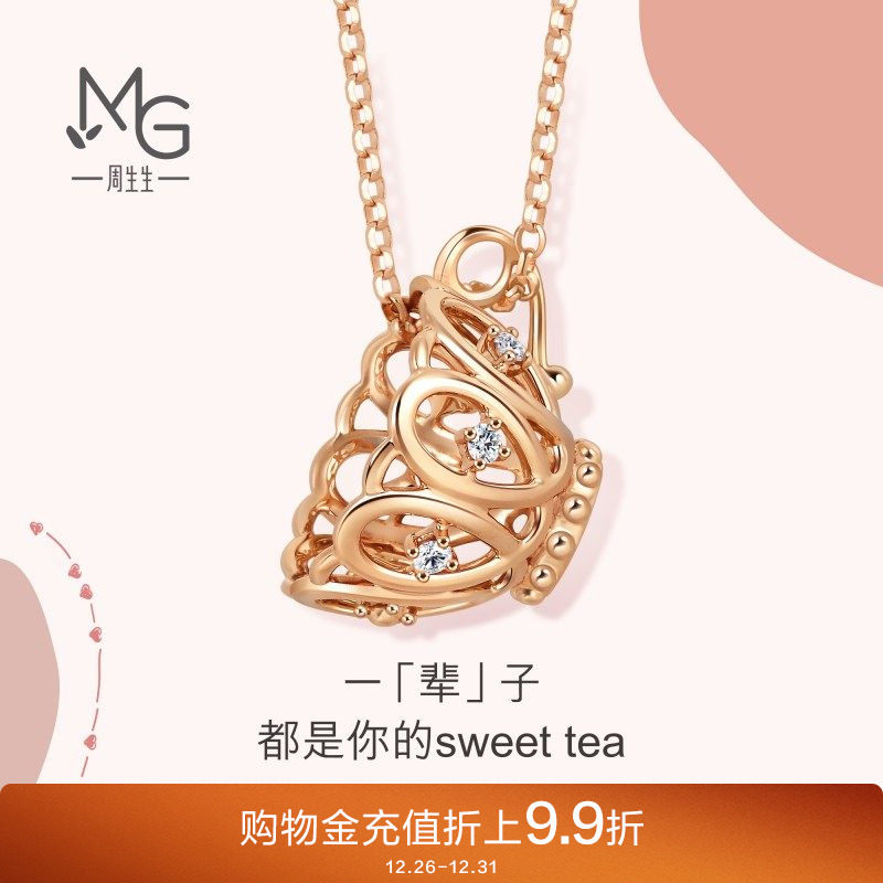 潮宏基悦己小幸运红18k项链玫瑰金锁骨女坠链套链礼物纪念礼物