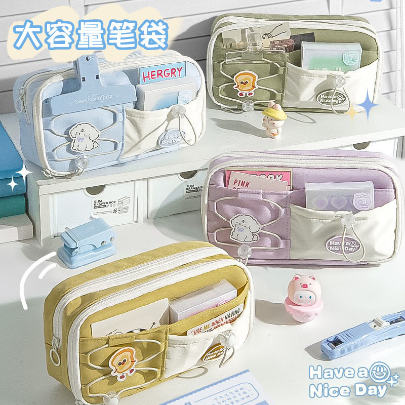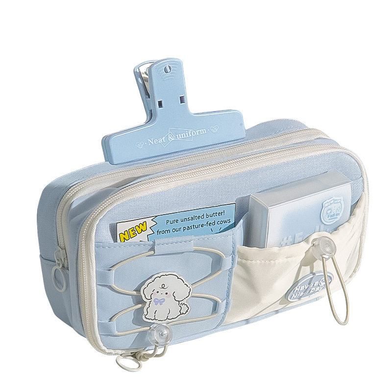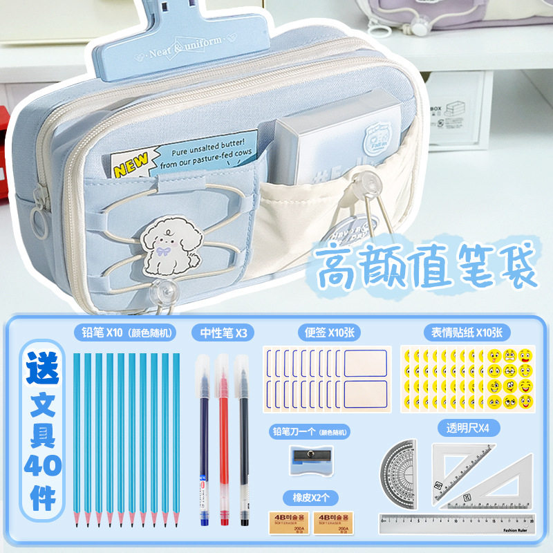 海盐奶蓝笔袋大容量小众设计师原创新款铅笔盒学生超火文具盒笔袋