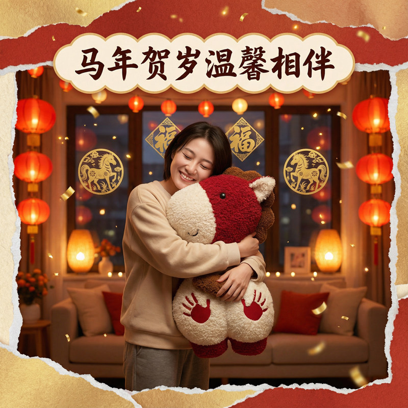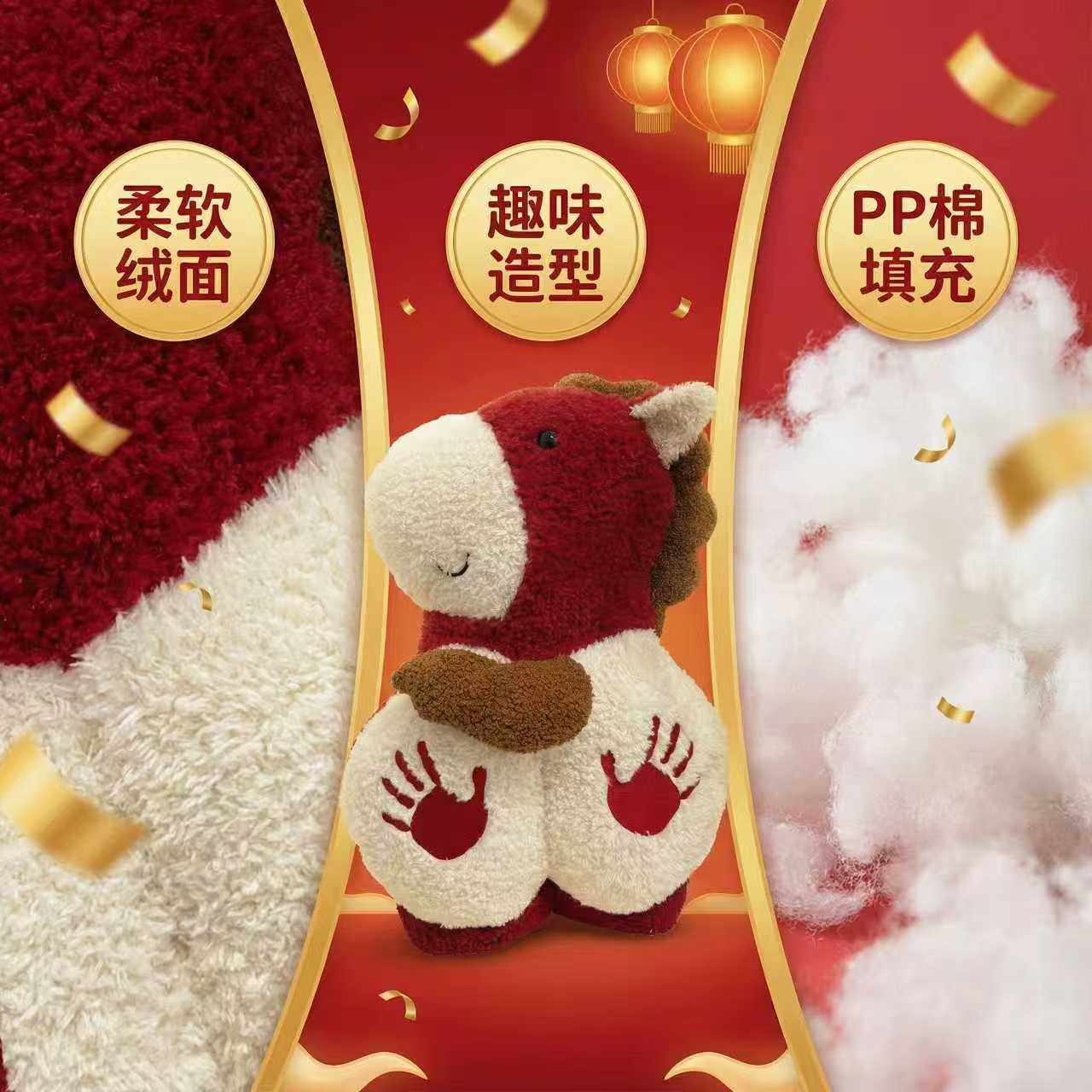 马年吉祥物公仔毛绒玩具红色生肖马玩偶摆件新年活动礼物定制Logo