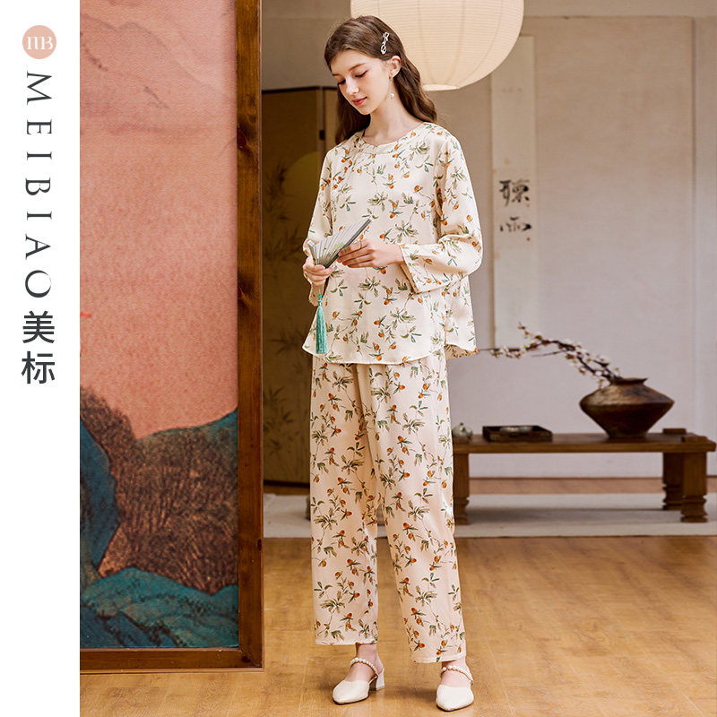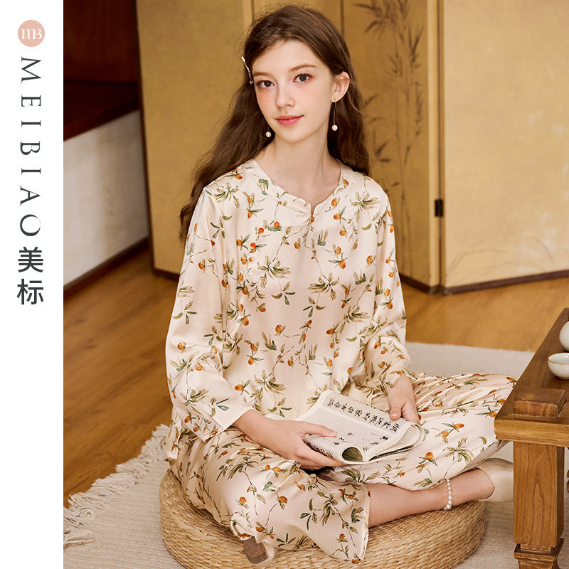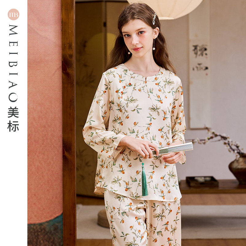 【断码清仓】美标新中式真丝睡衣套装女春秋桑蚕丝重磅丝绸家居服