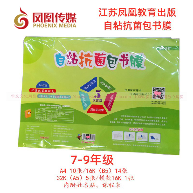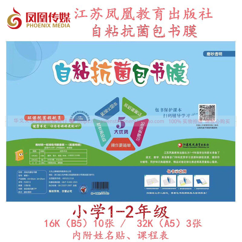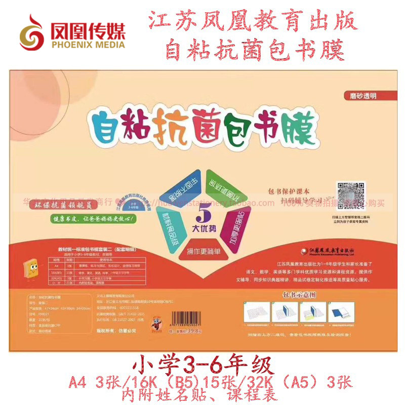 江苏凤凰教育自粘抗菌包书膜教材统一标准小学全年级书皮套装磨砂