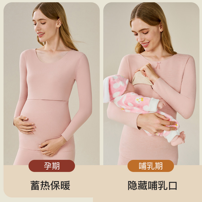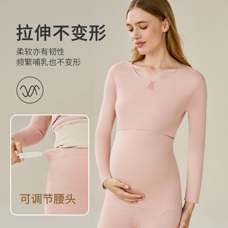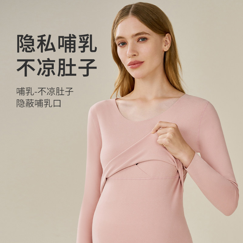 孕妇秋衣秋裤套装保暖内衣女怀孕期加绒德哺乳睡衣月子服秋冬打底