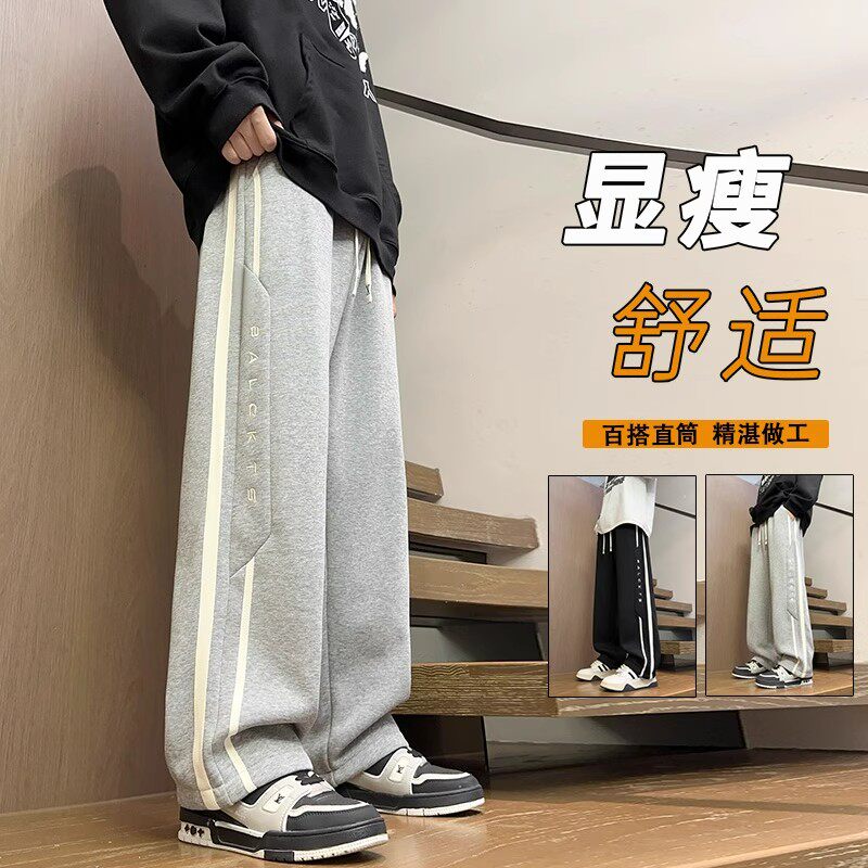 森马宽松直筒卫裤男2025秋冬新款重磅垂感阔腿裤运动休闲裤男女款