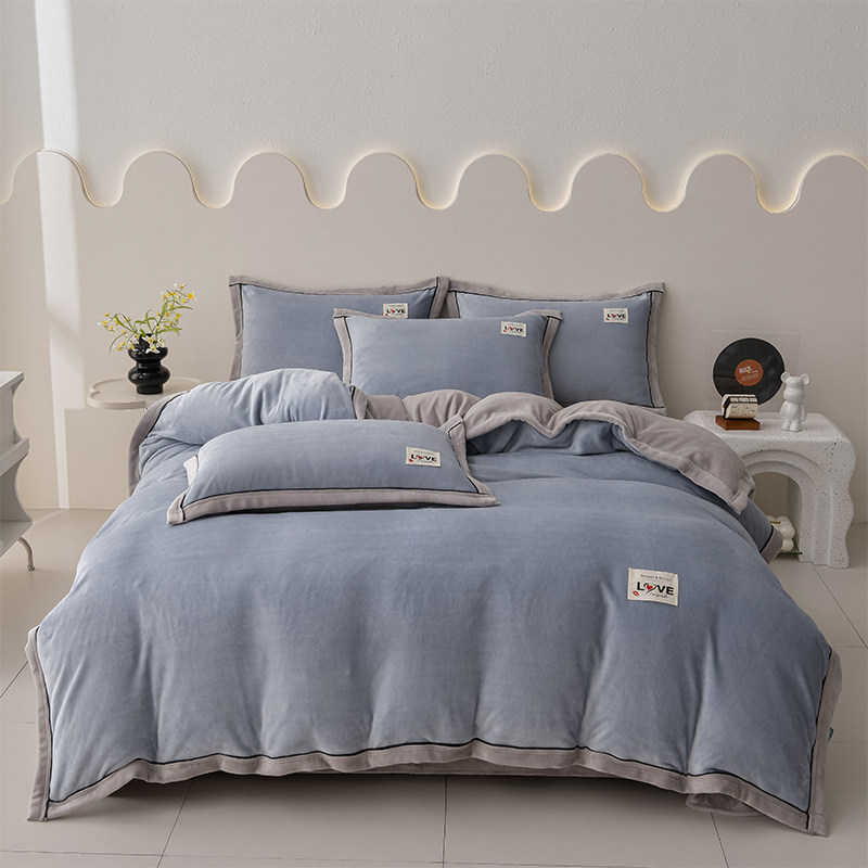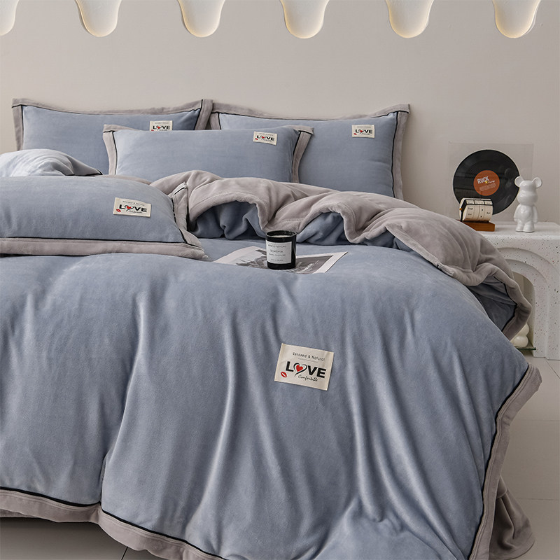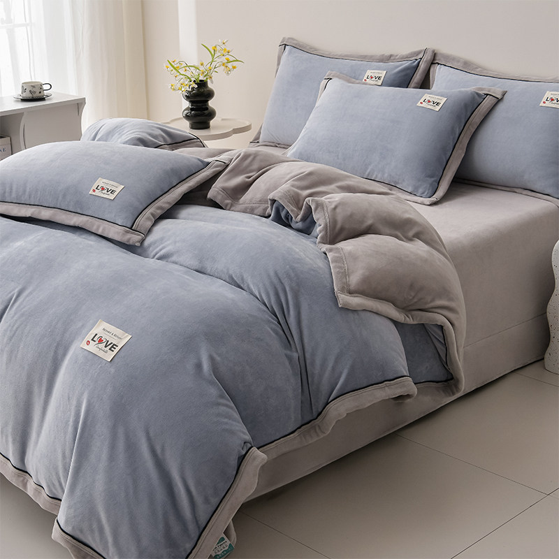 秋冬季加厚四件套牛奶绒被套床单双面加绒被罩床笠学生宿舍三件套