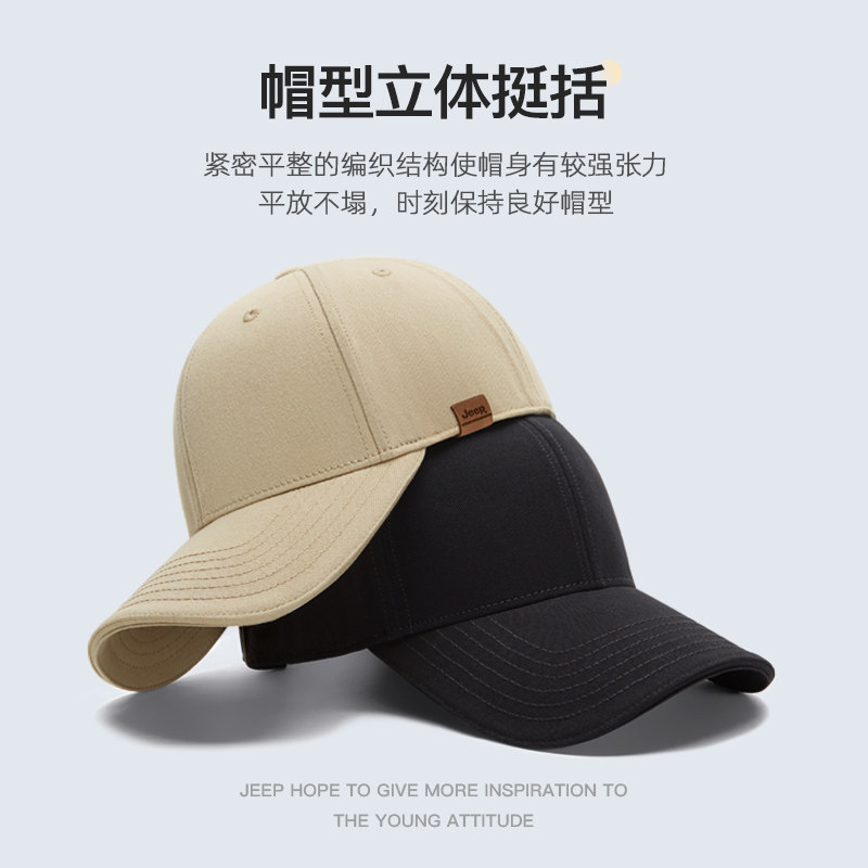 jeep吉普男士棒球帽子秋冬季硬顶加深防晒鸭舌帽保暖男款大头围帽