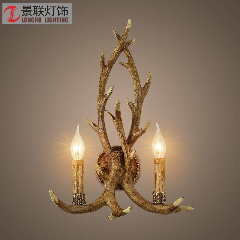 【批发】美式乡村复古鹿角壁灯卧室床头灯旋转楼梯墙灯过道led灯