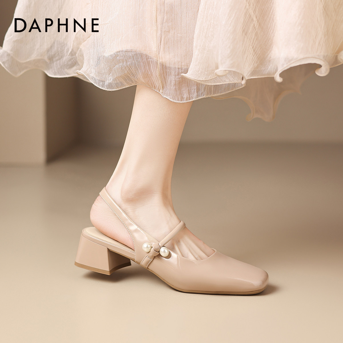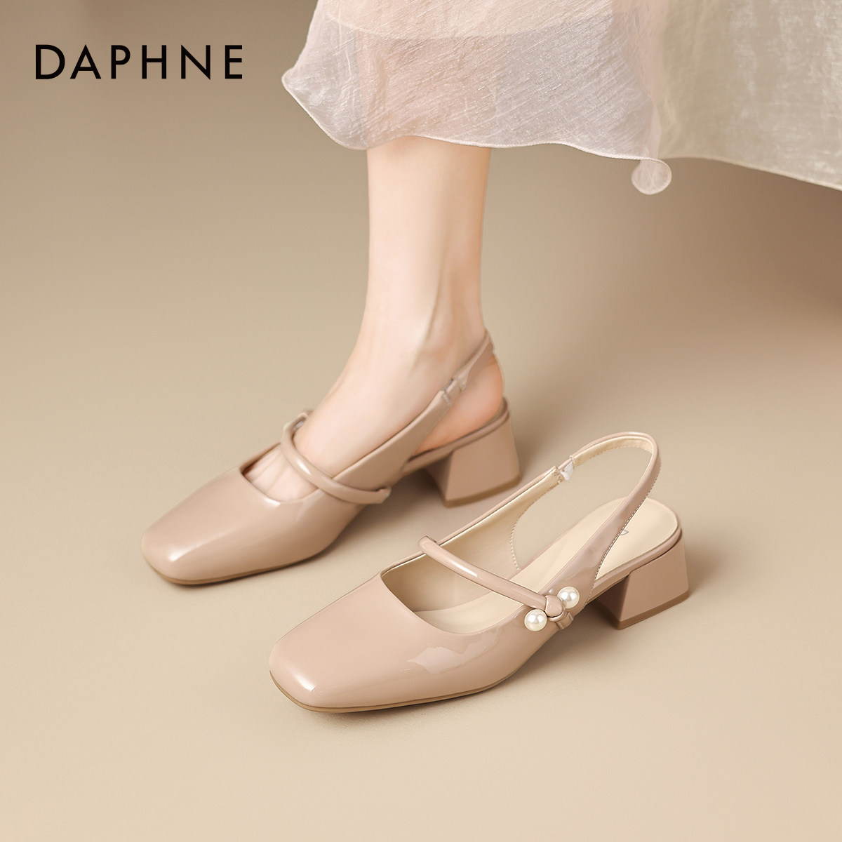 达芙妮裸色凉鞋女粗跟单鞋2026新款夏季法式玛丽珍高跟鞋包头皮鞋