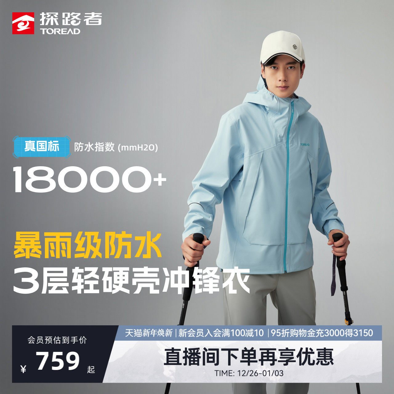 【探极】探路者冲锋衣男户外登山硬壳防水3L压胶轻量防风外套女