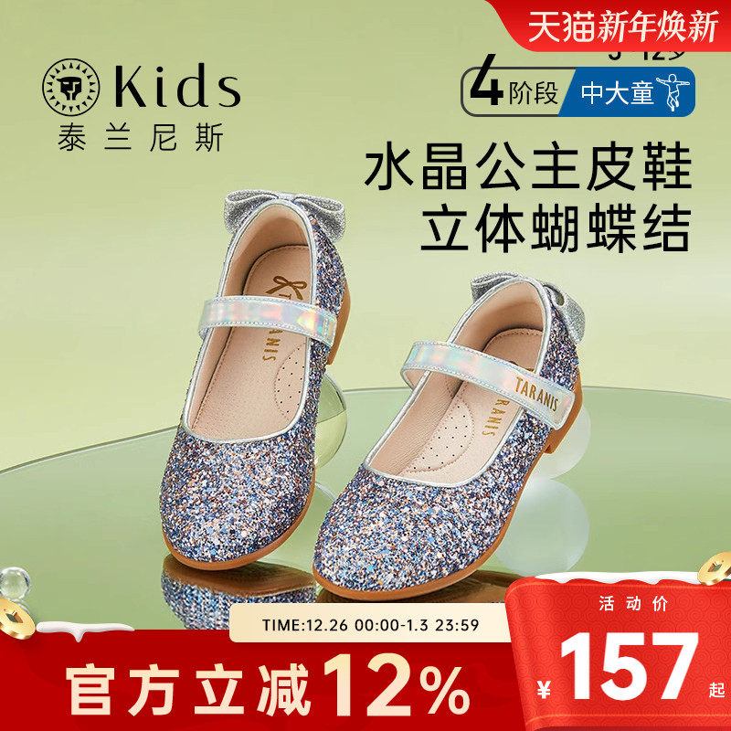 泰兰尼斯kids新款女童水晶公主鞋秋演出复古童鞋儿童亮钻小皮鞋潮