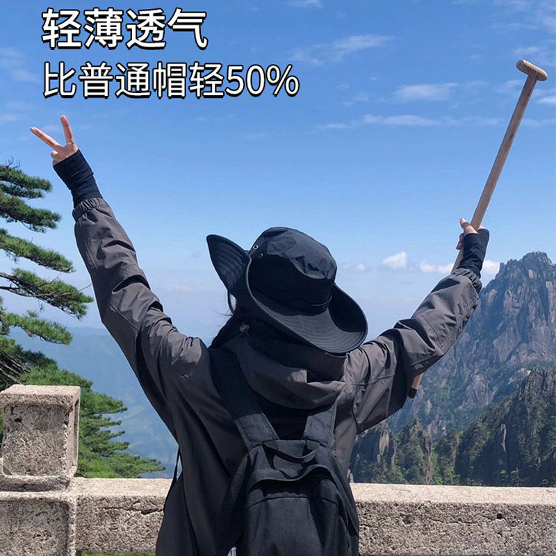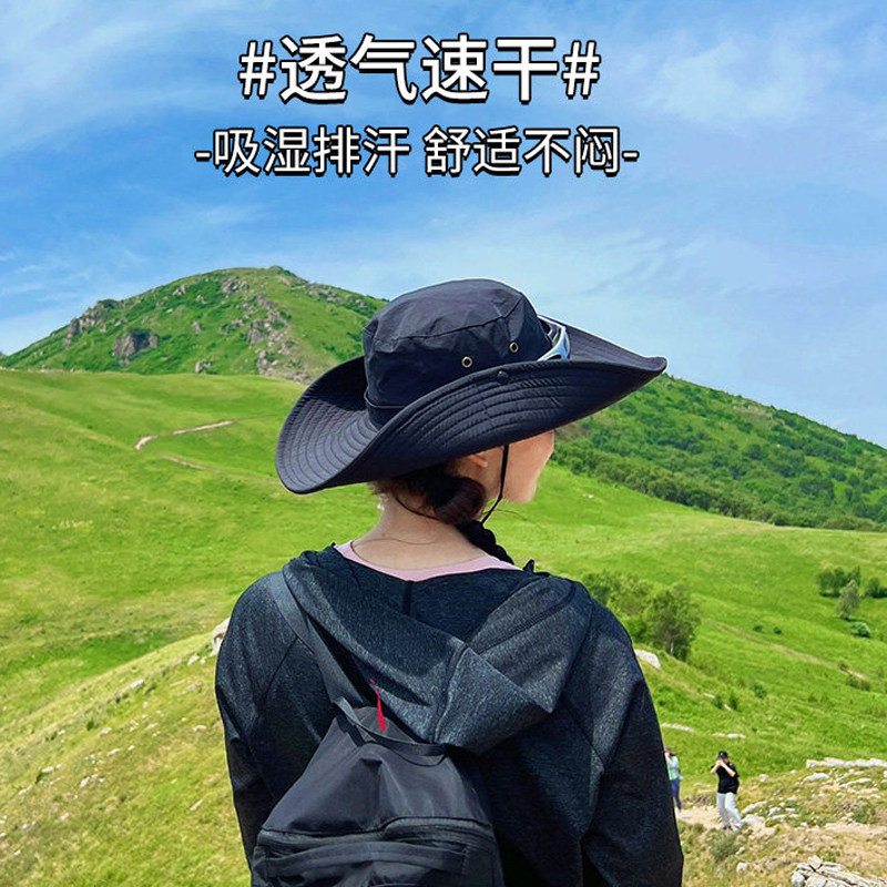 西部牛仔帽女夏季登山渔夫帽大头围户外徒步防晒遮阳钓鱼帽子透气