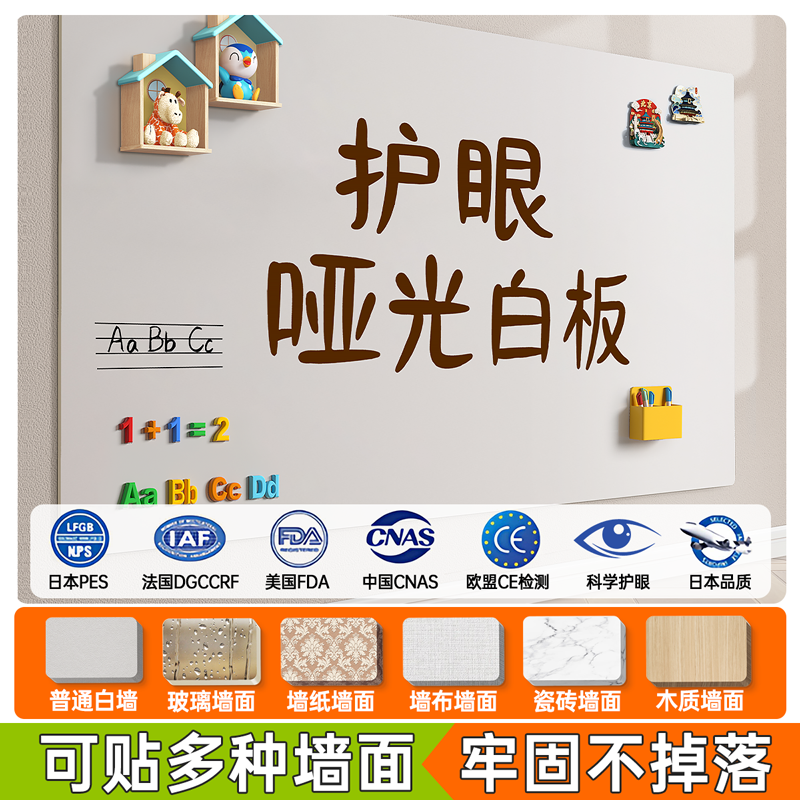 哑光白板家用教学可擦护眼不反光磁吸大白板写字板办公用可移动移除不伤墙家庭用双层画板儿童涂鸦小黑板墙贴