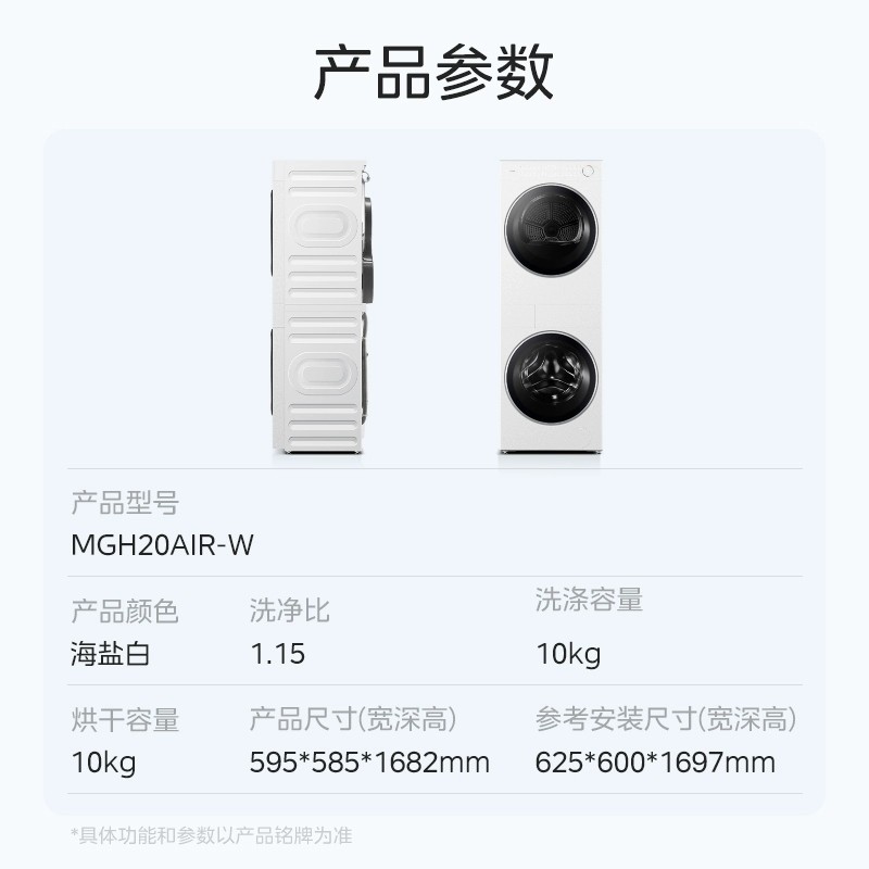 [清风明月2.0洗烘塔]美的洗烘套装10KG家用洗衣机热泵烘干机组合