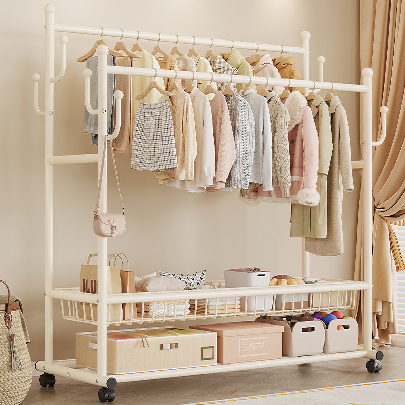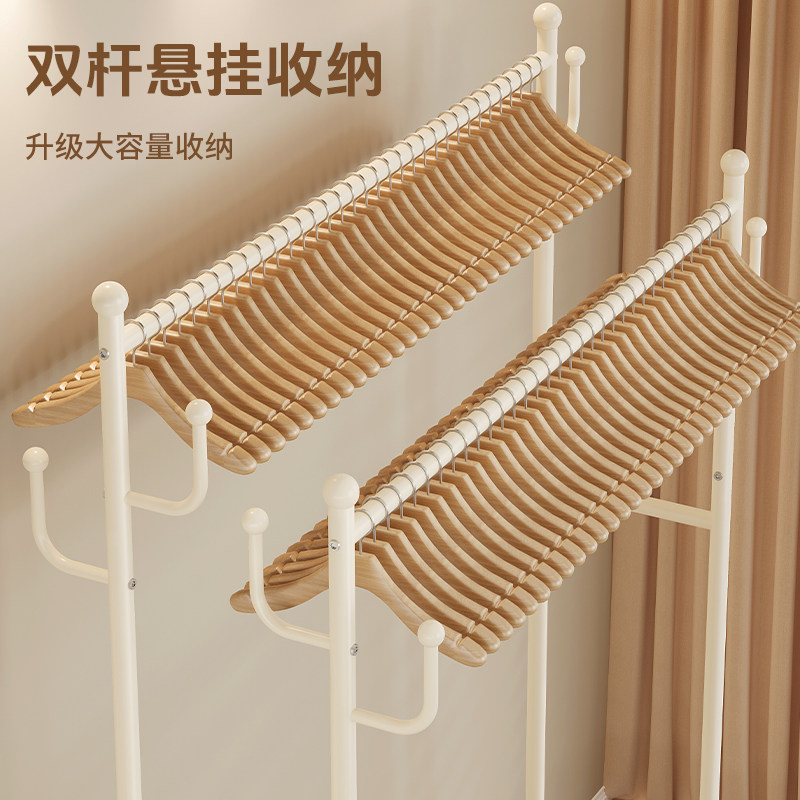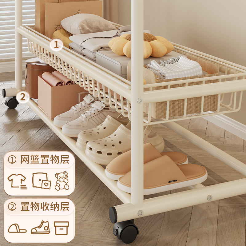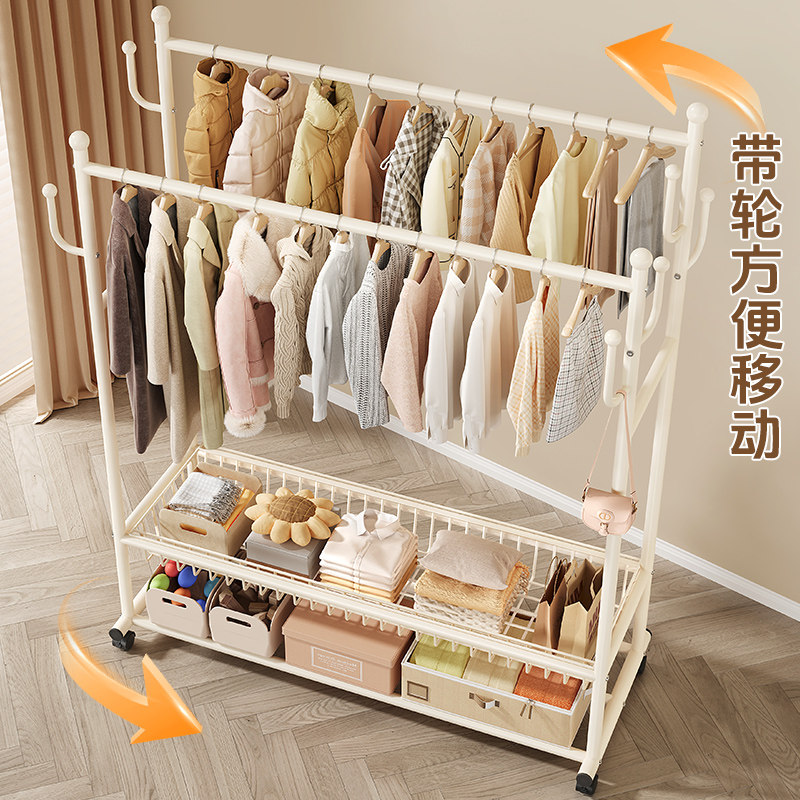 双杆晾衣架室内卧室多功能可移动挂衣架落地家用衣帽架裤架置物篮