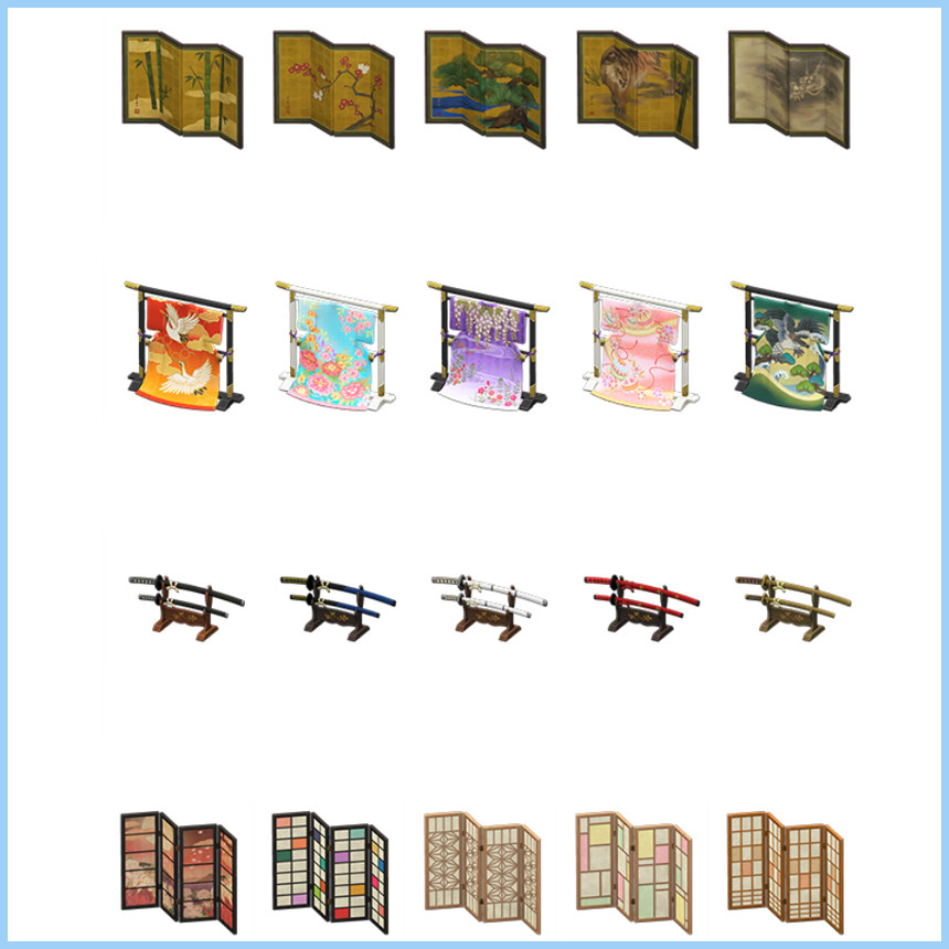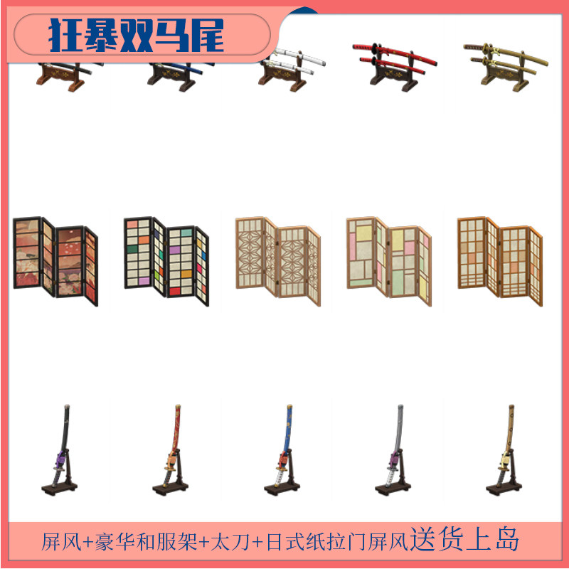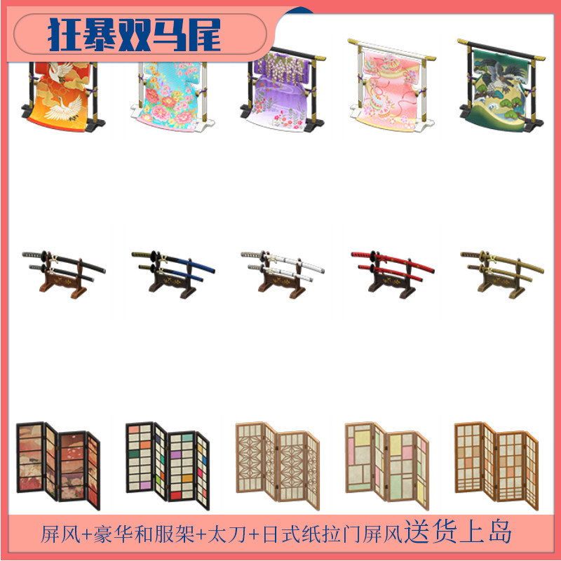 动物之森 日式屏风 豪华和服架 太刀家居摆件 屏风拉门 吕游
