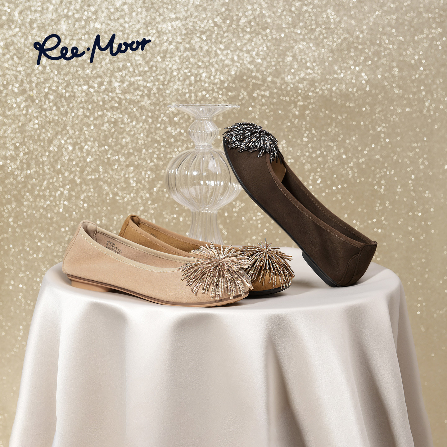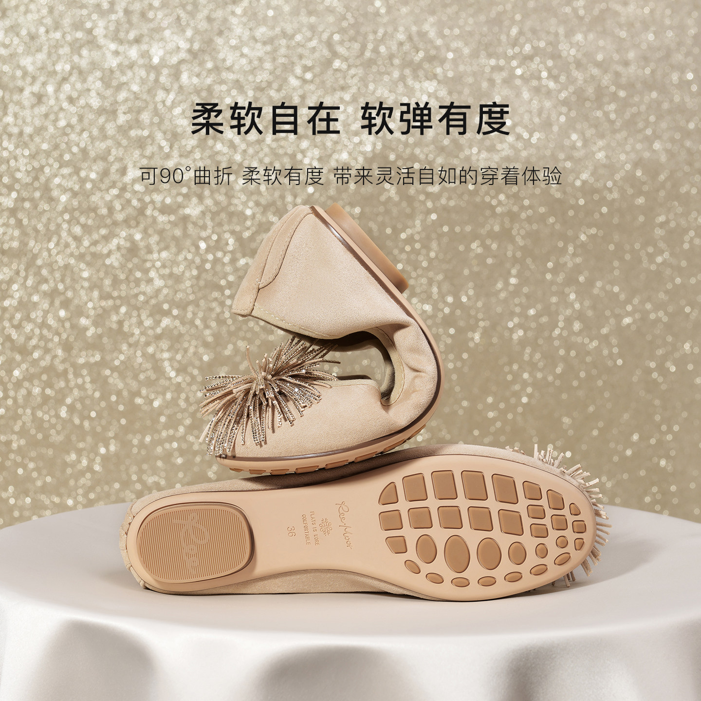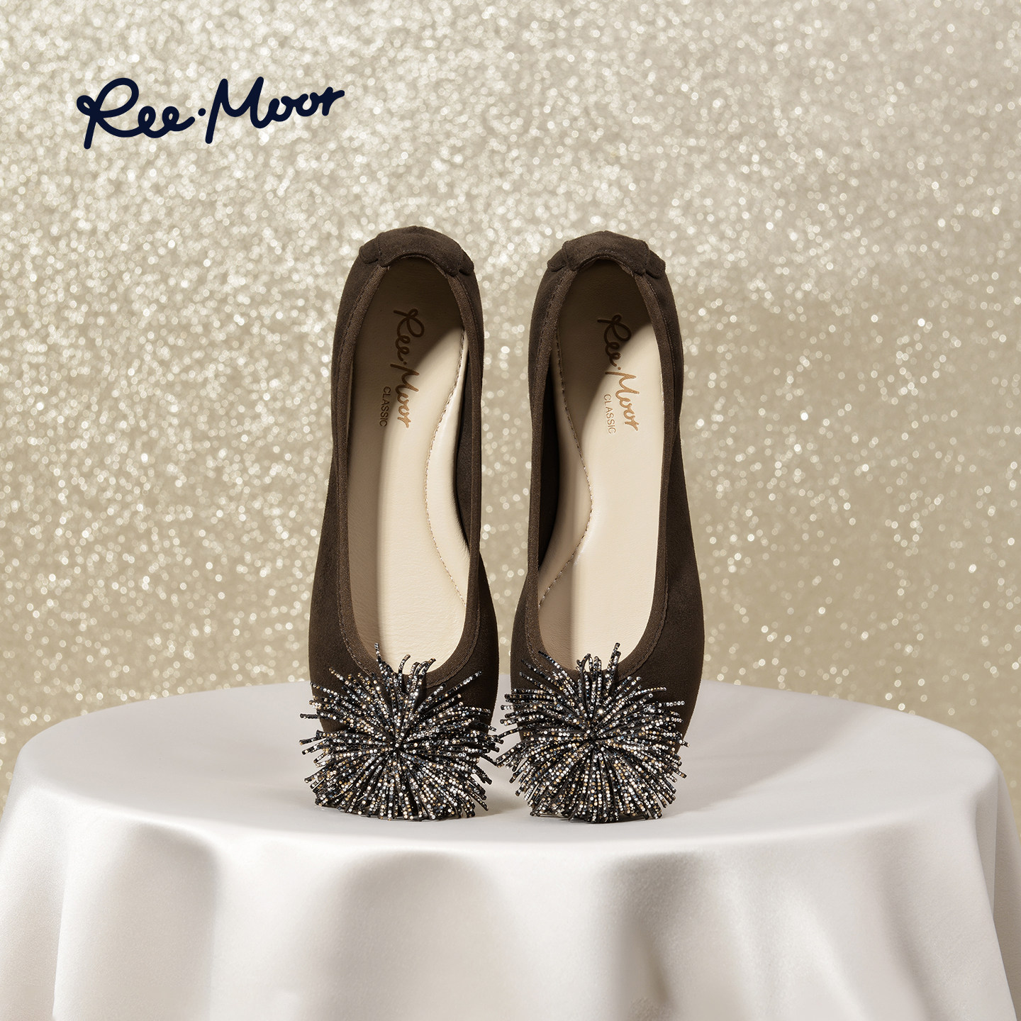 REEMOOR睿慕2025秋季新款流苏水钻浅口平底单鞋女鞋