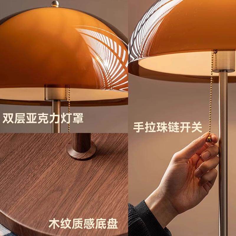 2025中古客厅落地灯氛围沙发旁边高级感床头置物架一体卧室台灯