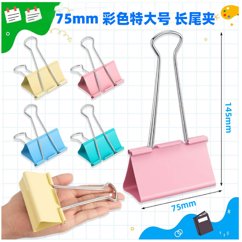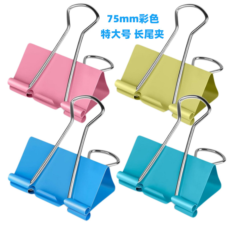 75mm长尾夹子特大号60mm大号燕尾夹50mm彩色41大中小号多规格文具办公夹子财务室办公用票据夹子金属文件夹子