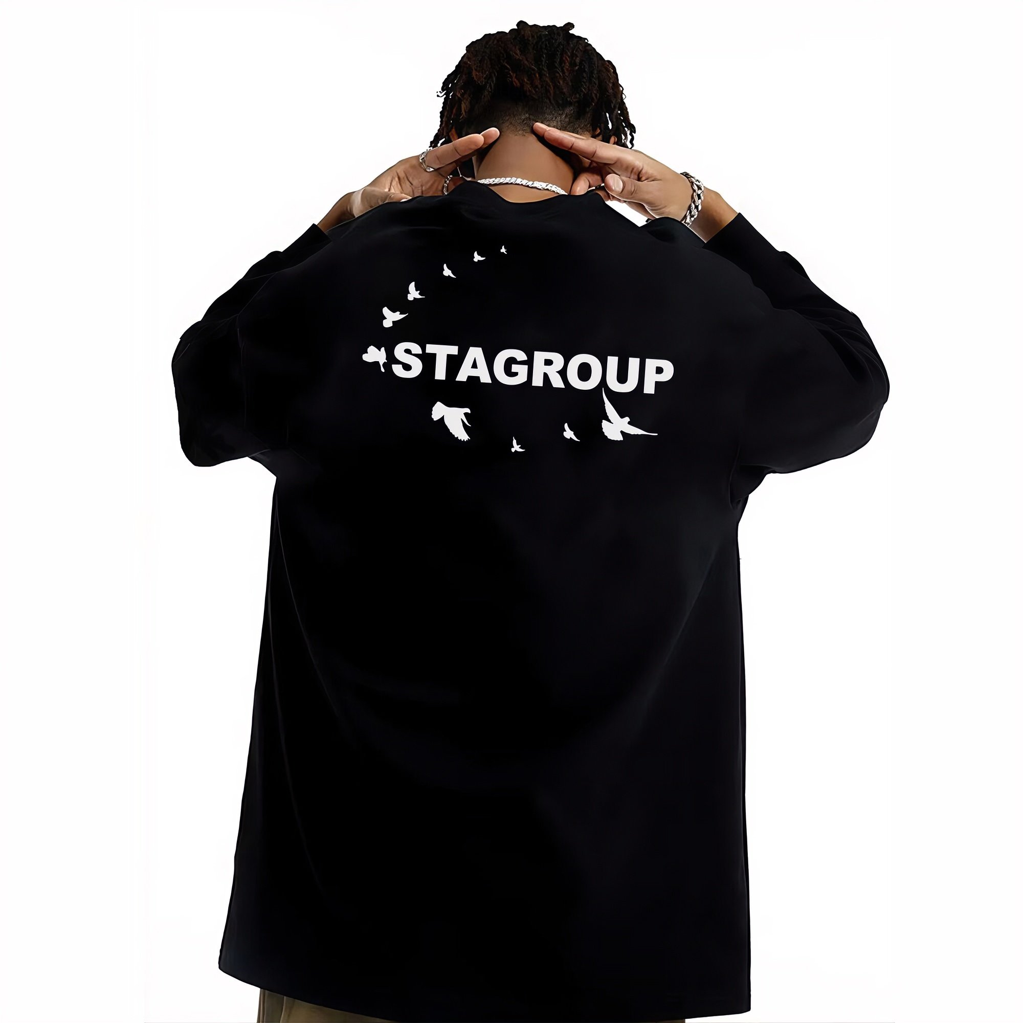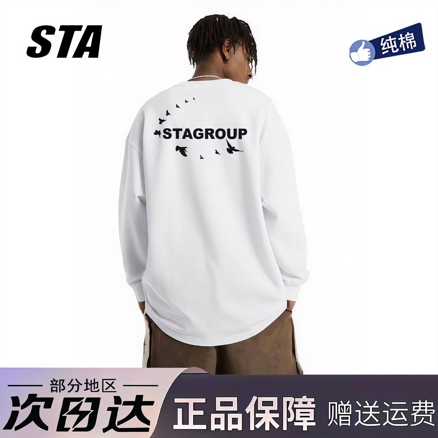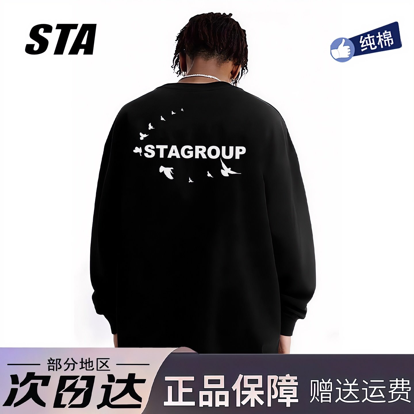 STA旗舰店潮牌美式字母长袖男女秋季潮牌高街重磅纯棉黑色卫衣