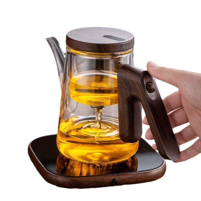 顶壶中心无杆滑动磁吸泡茶壶玻璃内胆家用过滤飘逸杯泡茶磁吸滑动