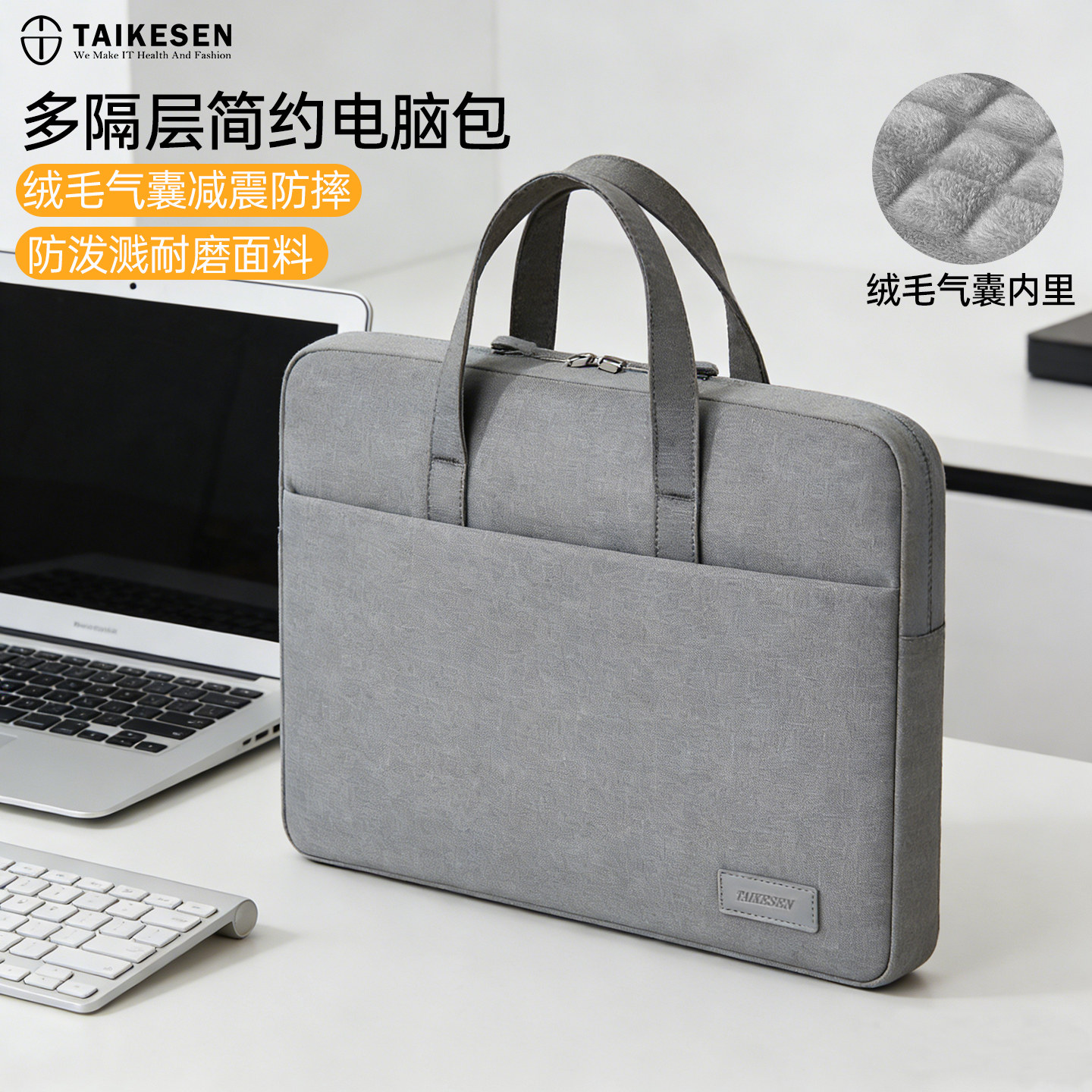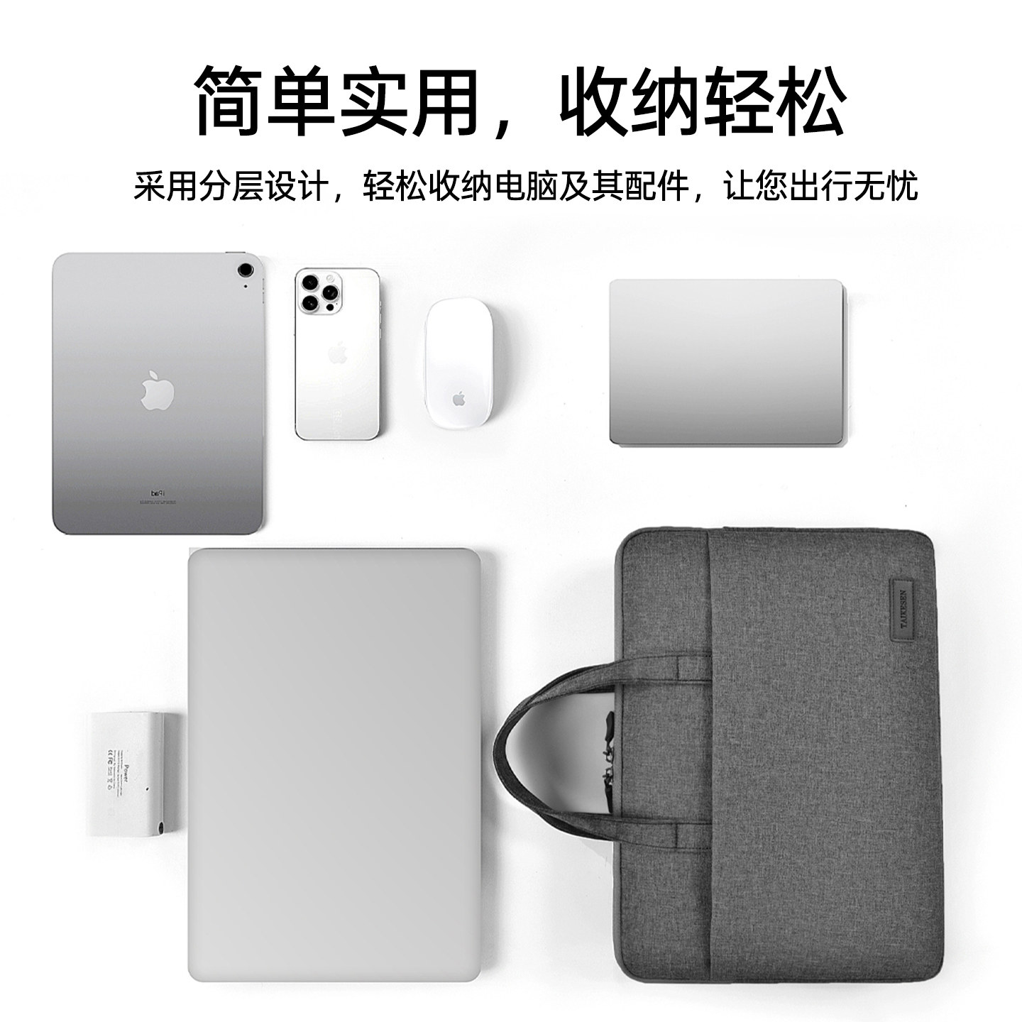 泰克森手提14寸电脑包适用MacBook分层设计搭配拉杆带百搭便携