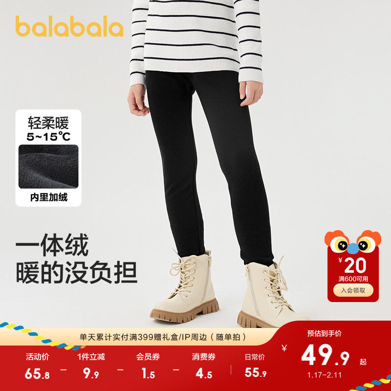 巴拉巴拉童装儿童加绒打底裤冬装女童加厚保暖秋冬长裤子洋气百搭