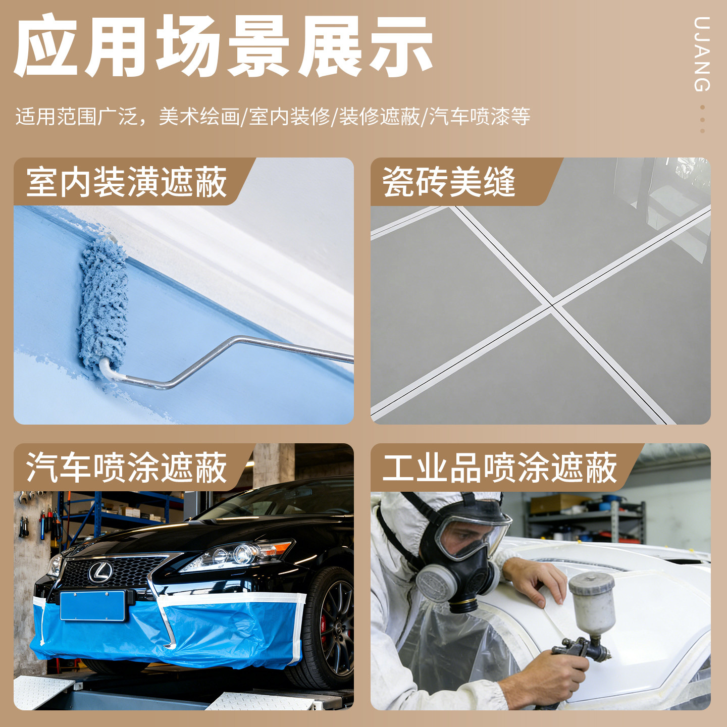 特宽美纹纸胶带无痕墙面贴纸防水防晒喷漆保护隔离纸装修油漆加宽胶布50m米分色纸专用超宽美文胶美缝纸胶纸
