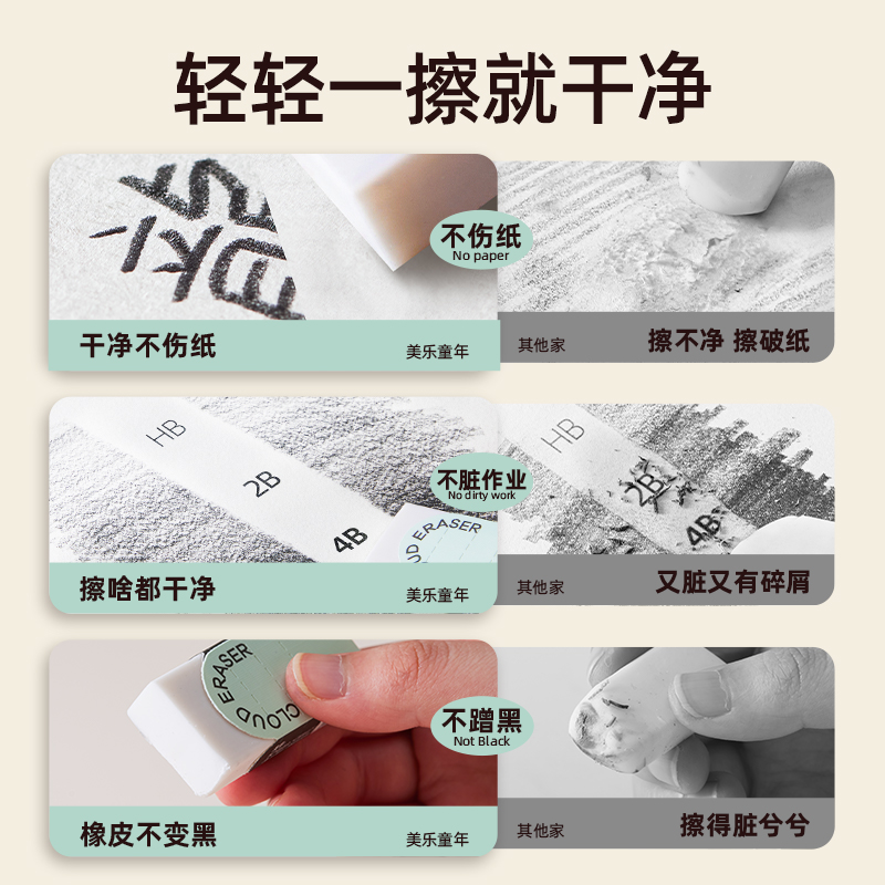 美乐童年小云橡儿童橡皮擦小学生专用无屑干净不留痕2b像皮擦创意卡通可爱大橡皮幼儿园美术素描铅笔橡皮擦