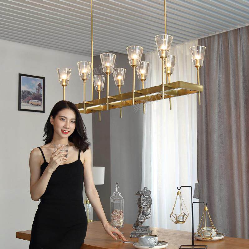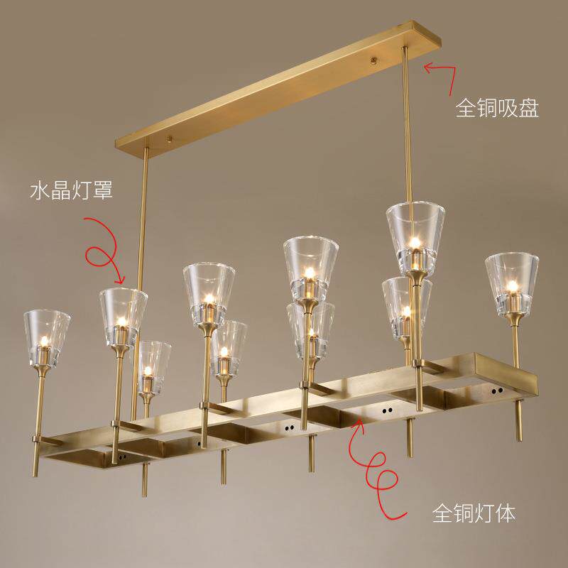 庆粤灯饰 餐厅灯吊灯rh灯具美式简约全铜水晶创意轻奢岛台吧台灯