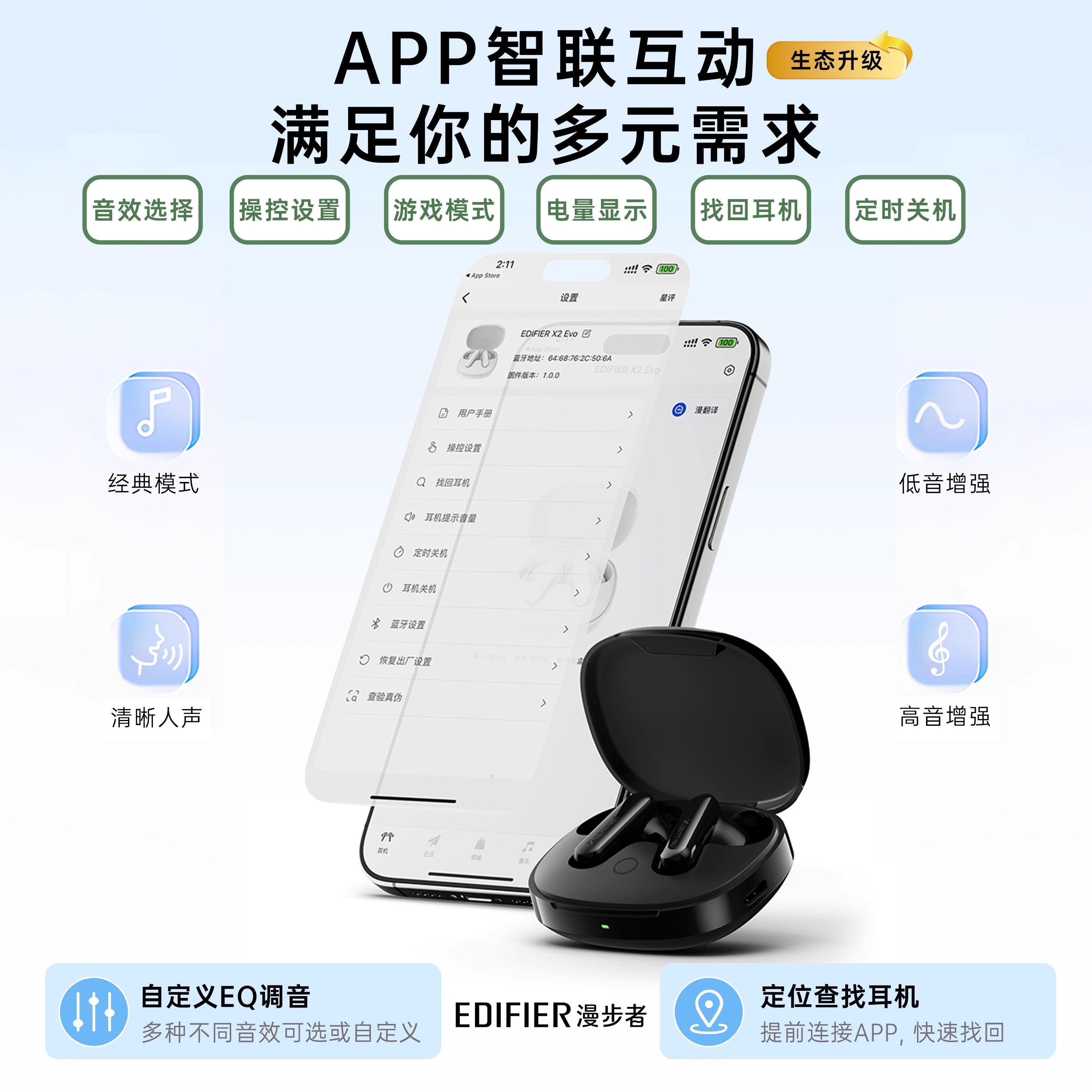 漫步者X2evo真无线蓝牙耳机学生运动通话降噪新款半入耳式X1EVO