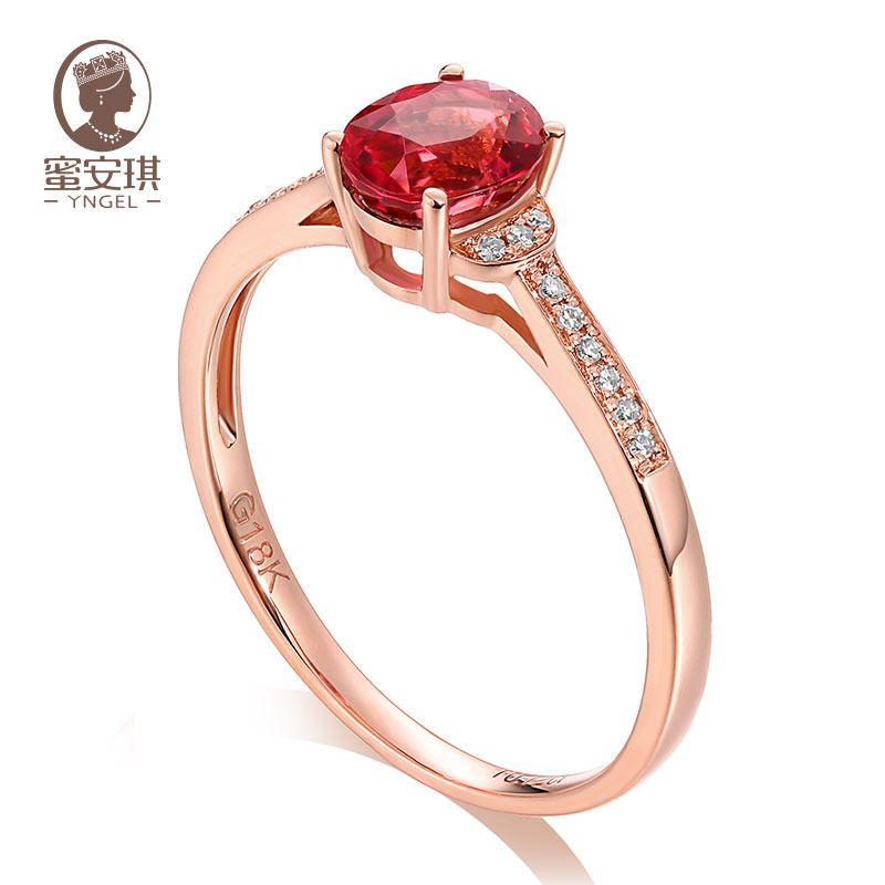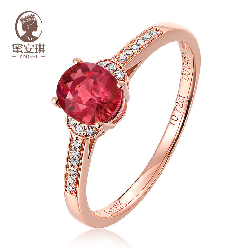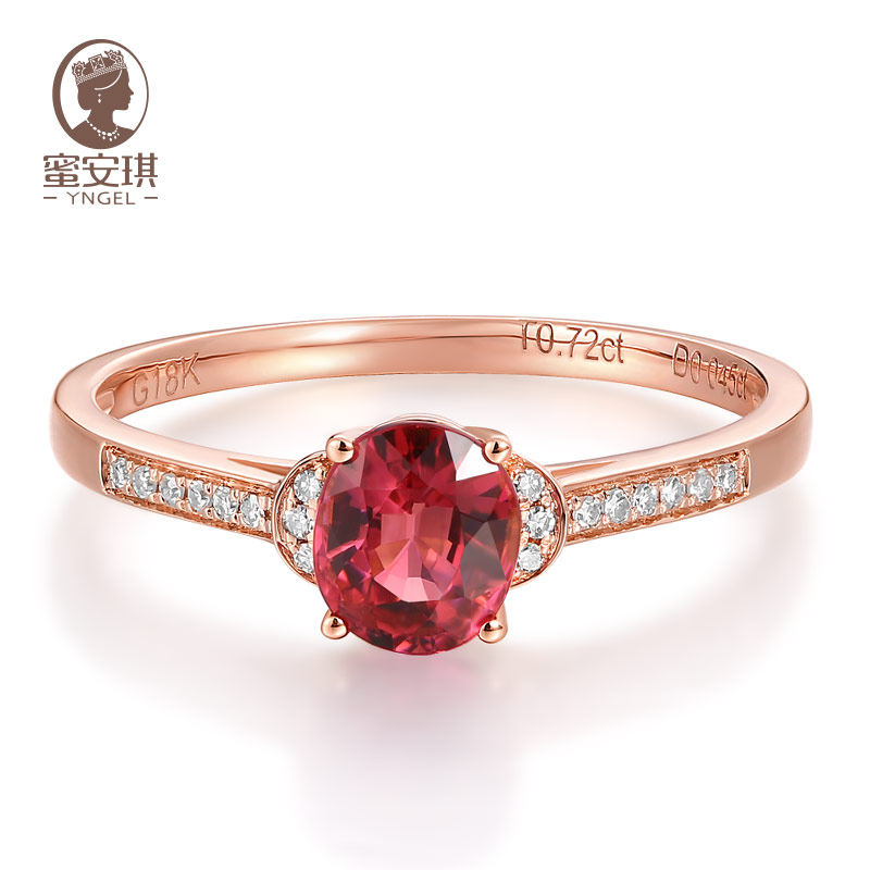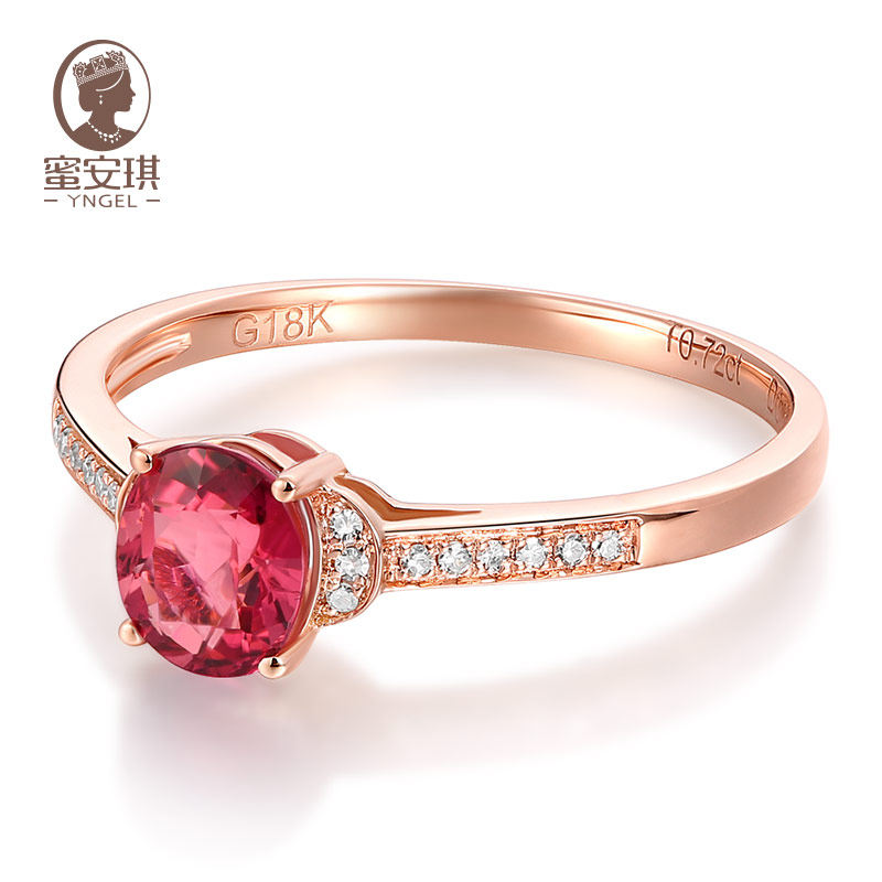 Yngel/蜜安琪天然宝石碧玺戒指订制18K金镶钻彩宝女戒婚戒送女友