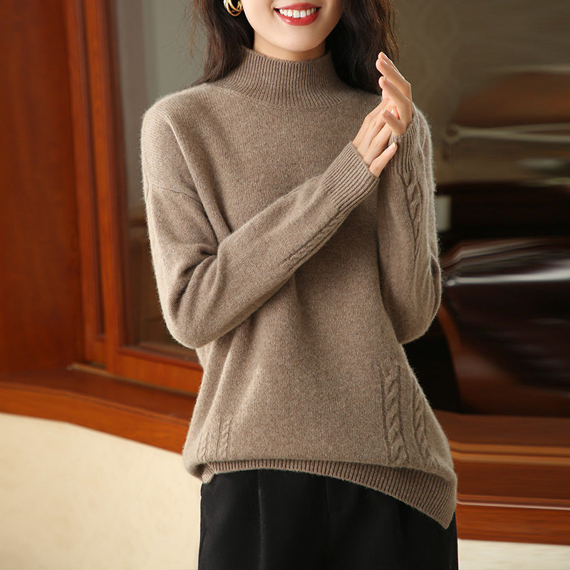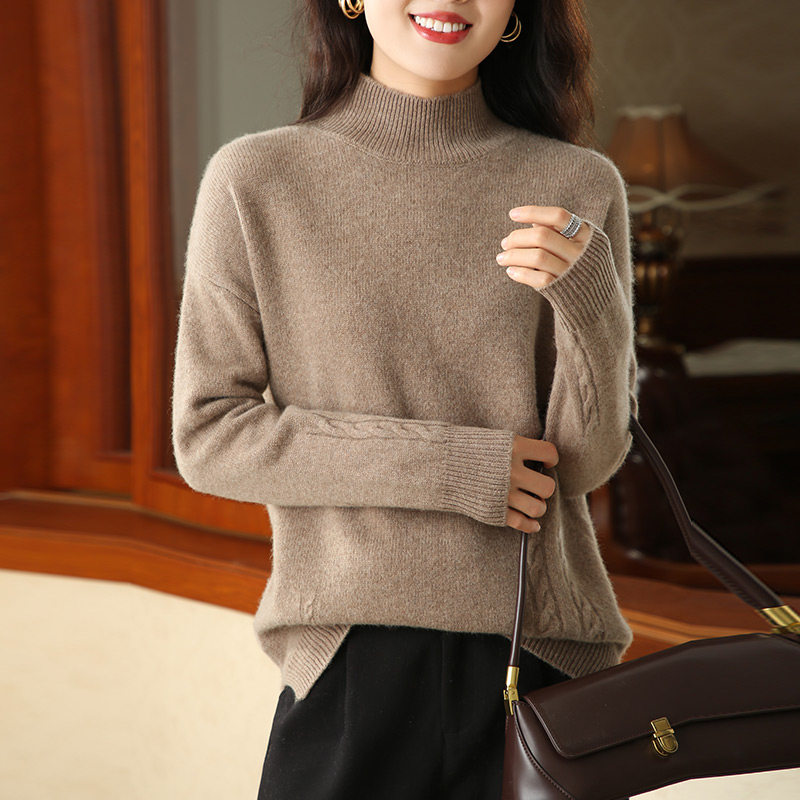 品牌高级感羊毛衫女半高领宽松毛衣秋冬加厚羊绒长袖针织打底衫新