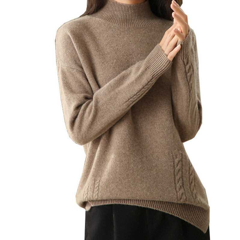 羊绒衫女100羊绒半高领2024秋冬新款宽松毛衣百搭羊毛针织打底衫