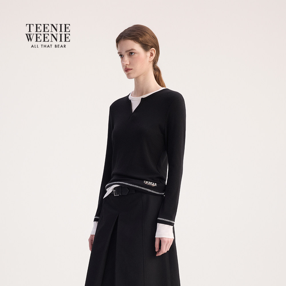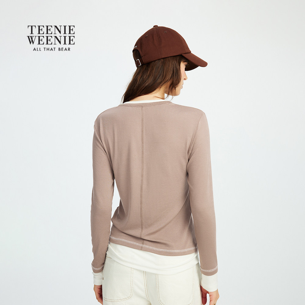 【天丝+醋酸】TeenieWeenie小熊T恤2025秋季新款假两件拼接长袖