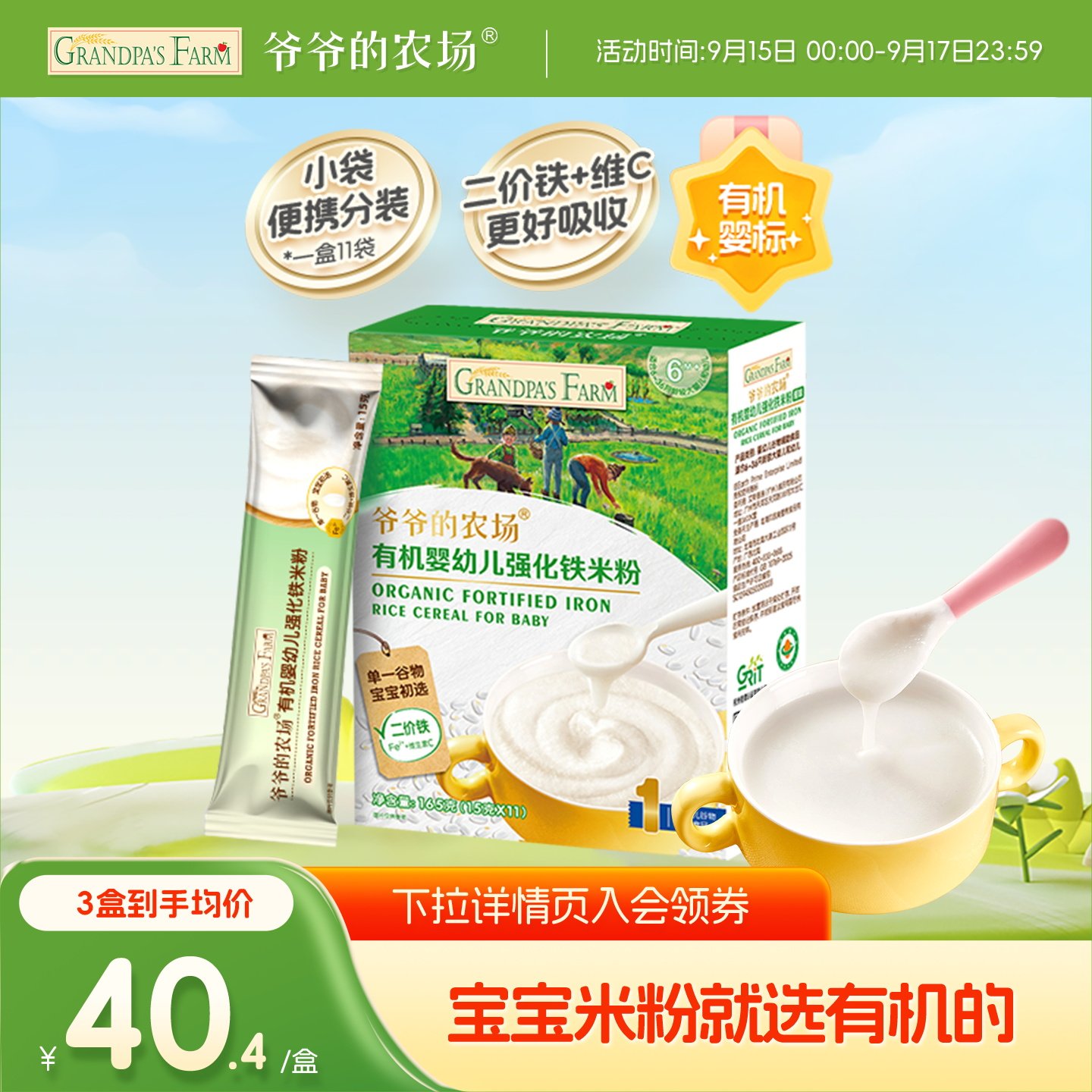 爷爷的农场婴幼儿有机高铁米粉原味营养米糊宝宝辅食小袋便携盒装