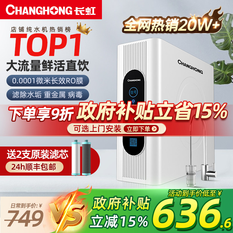 长虹净水器家用直饮RO反渗透厨房自来水过滤纯水机除垢厨下净水机