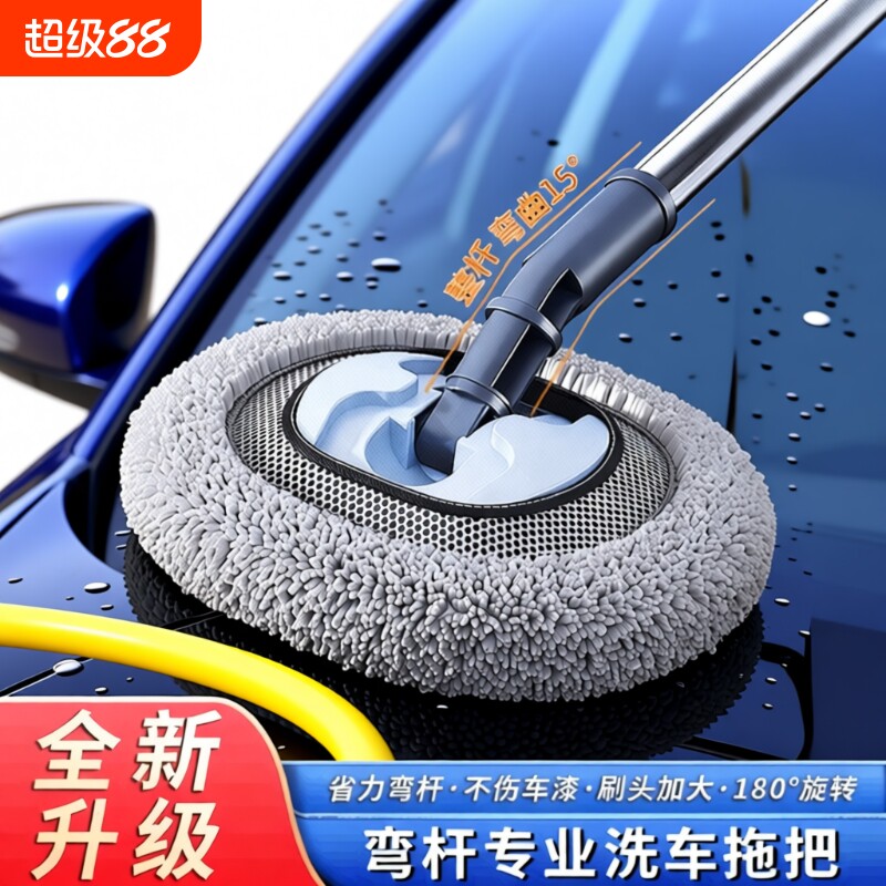 弯杆洗车拖把不伤车漆软毛伸缩车用汽车长柄刷子专用除尘掸子神器