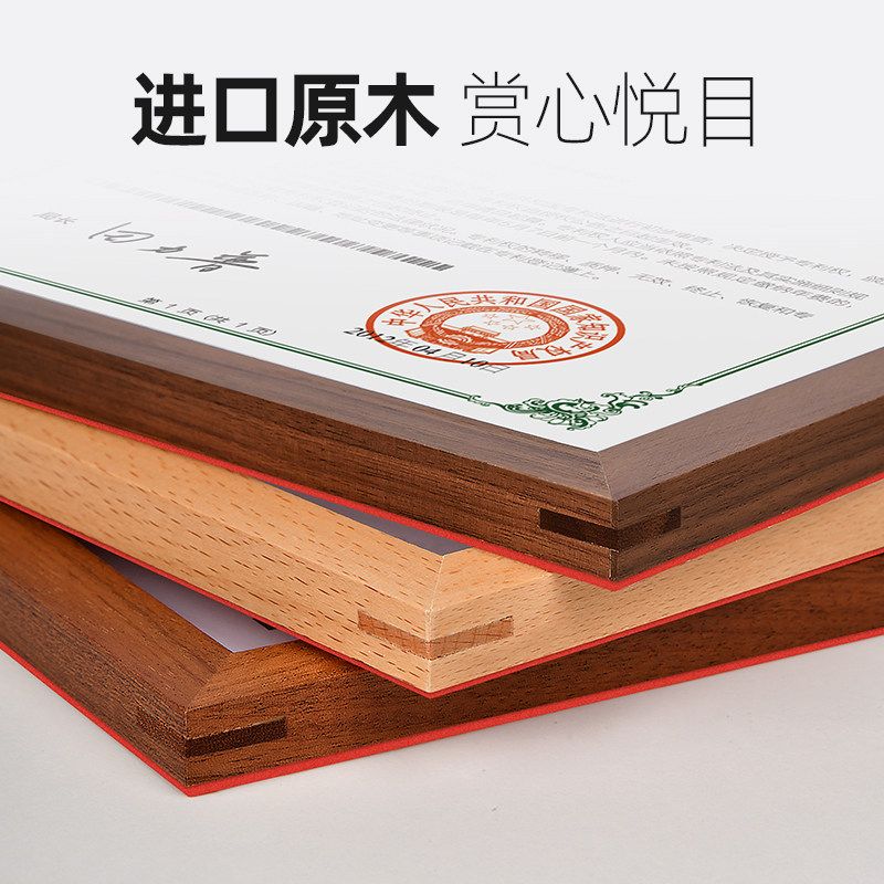 荣誉墙高档实木相框高企奖状证件框架挂墙展示免打孔a4专利证书框
