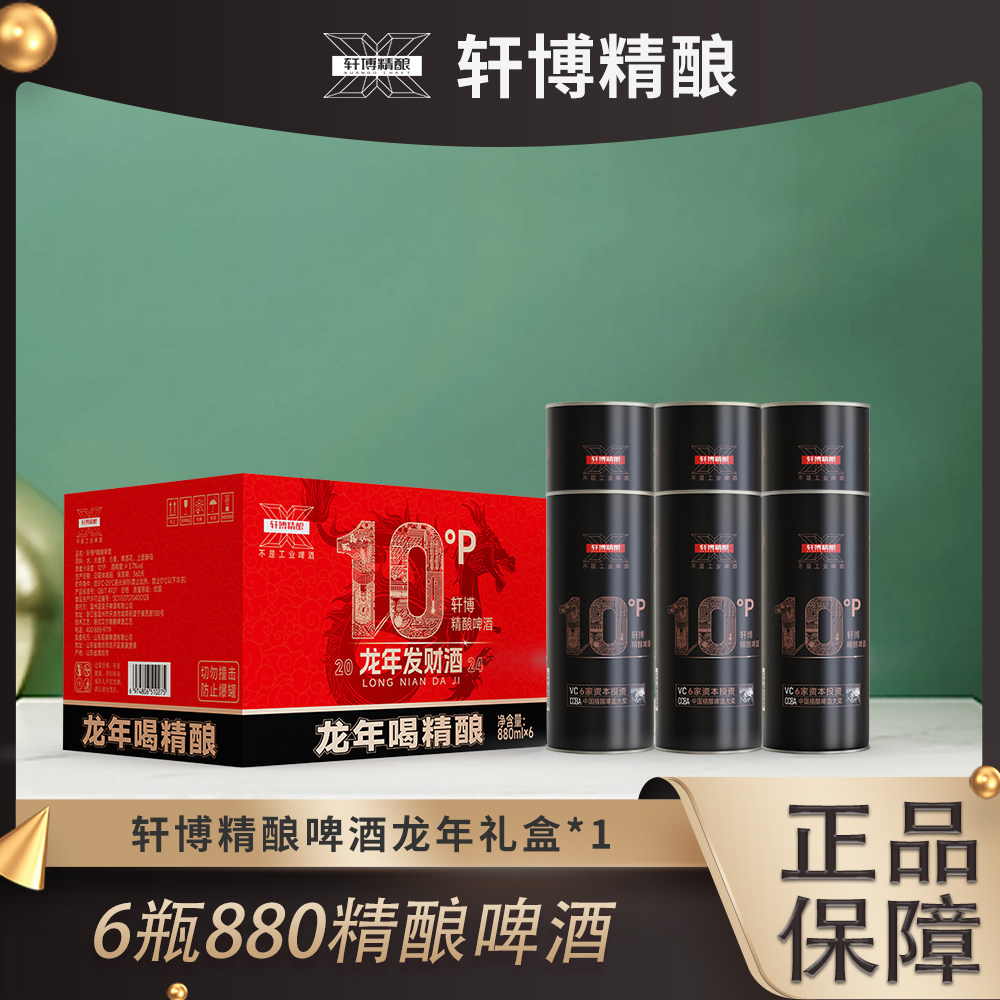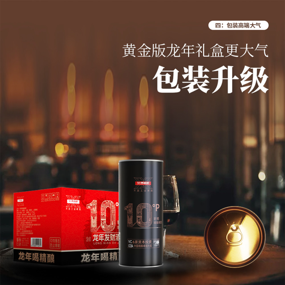 轩博精酿黄金版德系艾尔工艺酿造啤酒880ml*4桶泡沫箱发货